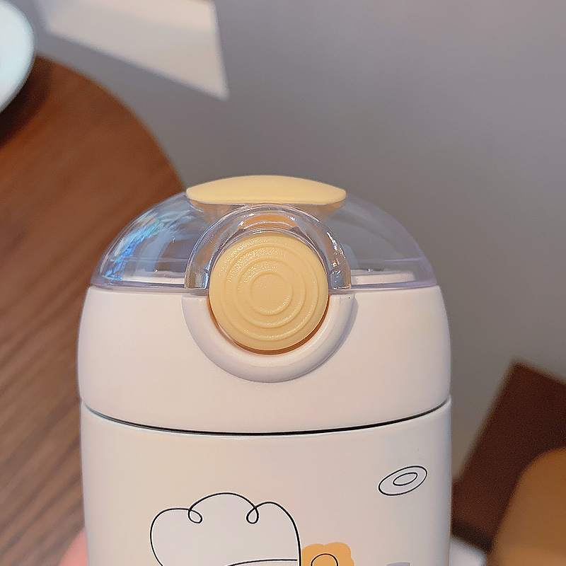 450ML欧雅线描卡通保温杯304不锈钢弹跳盖吸管杯