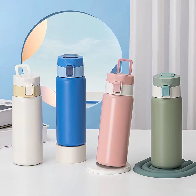 550ML简约纯色真空保温杯304不锈钢弹跳盖手提水杯
