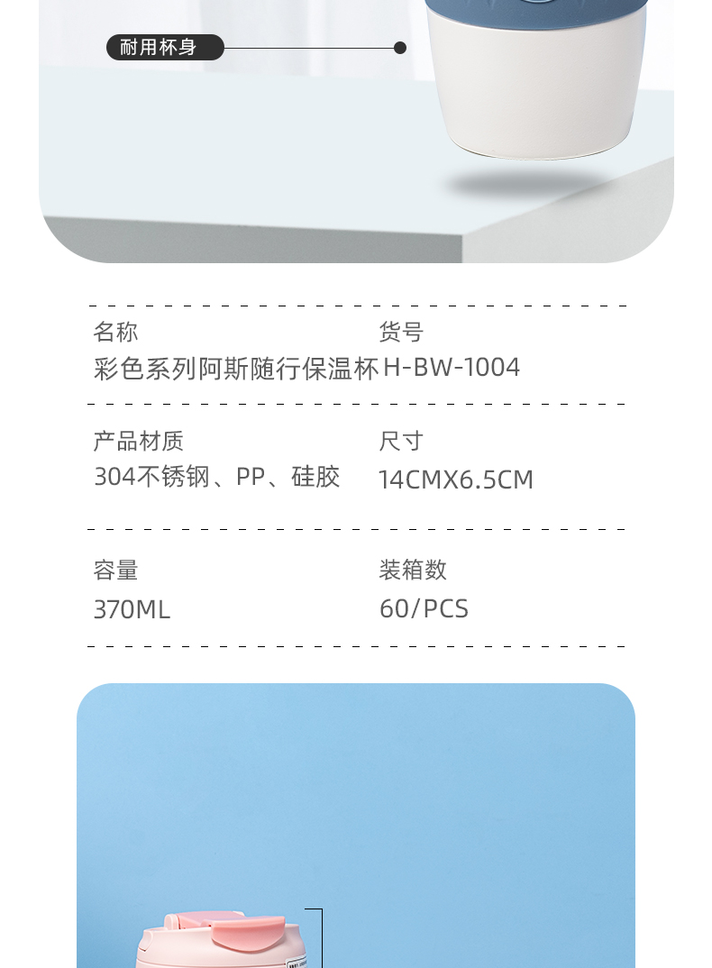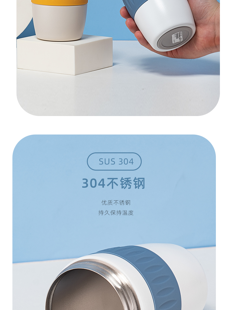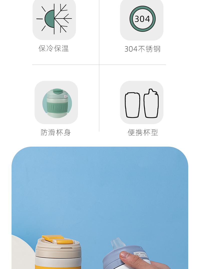 400ML简约英伦显温米豆豆直饮弹跳杯304不锈钢保温杯