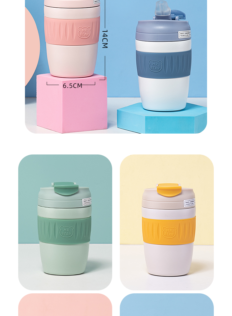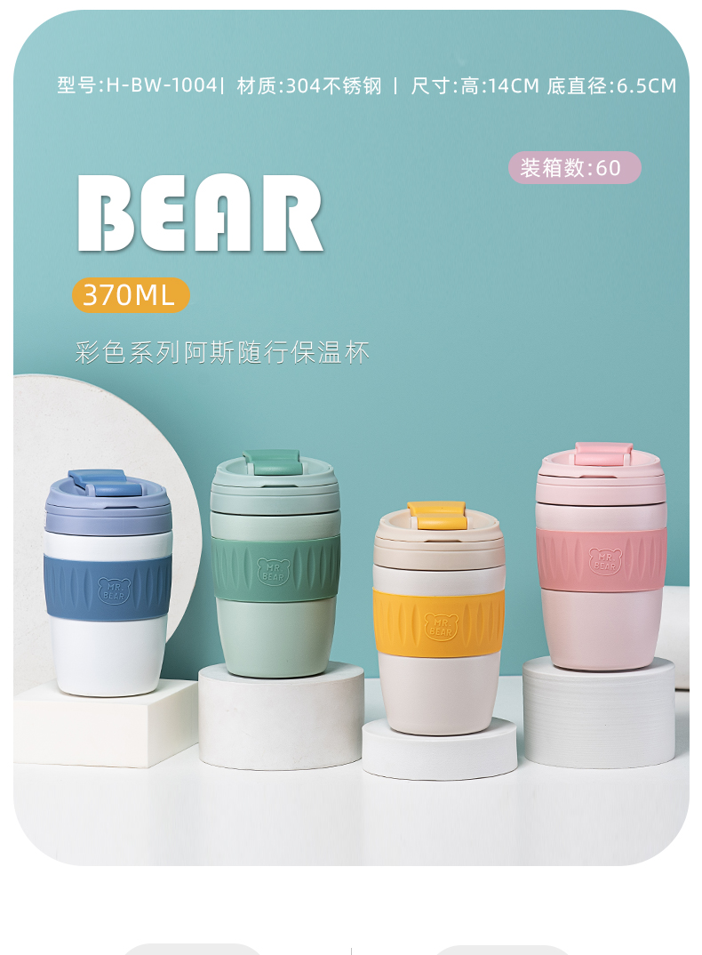 350ml日萌系列萌熊弹盖吸管保温杯时尚礼品定制水杯