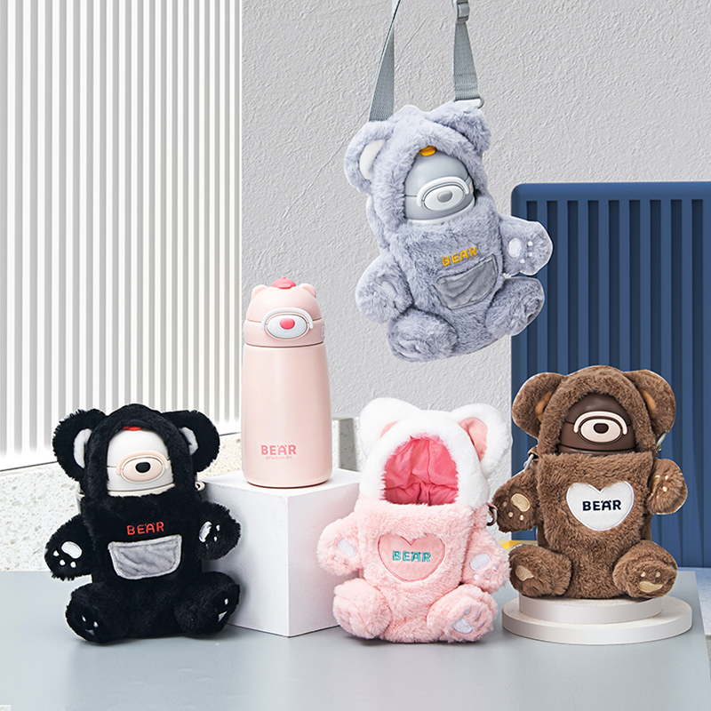 850ML绒绒熊保温杯316不锈钢可爱毛绒杯套吸管水杯