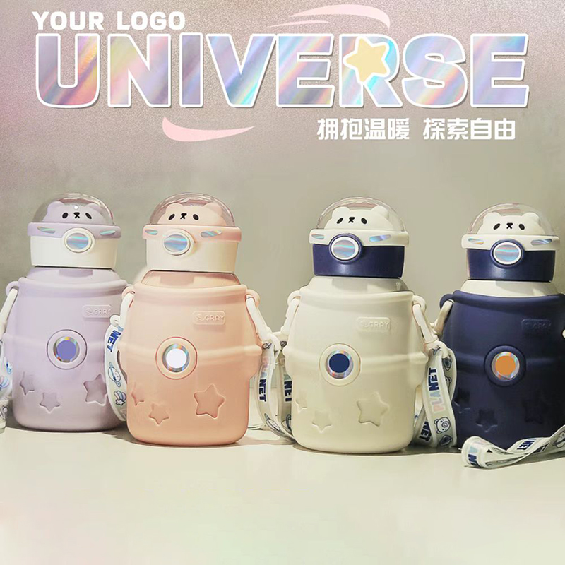 500ML316不锈钢抱抱星球宇航员保温杯可斜挎可爱水杯