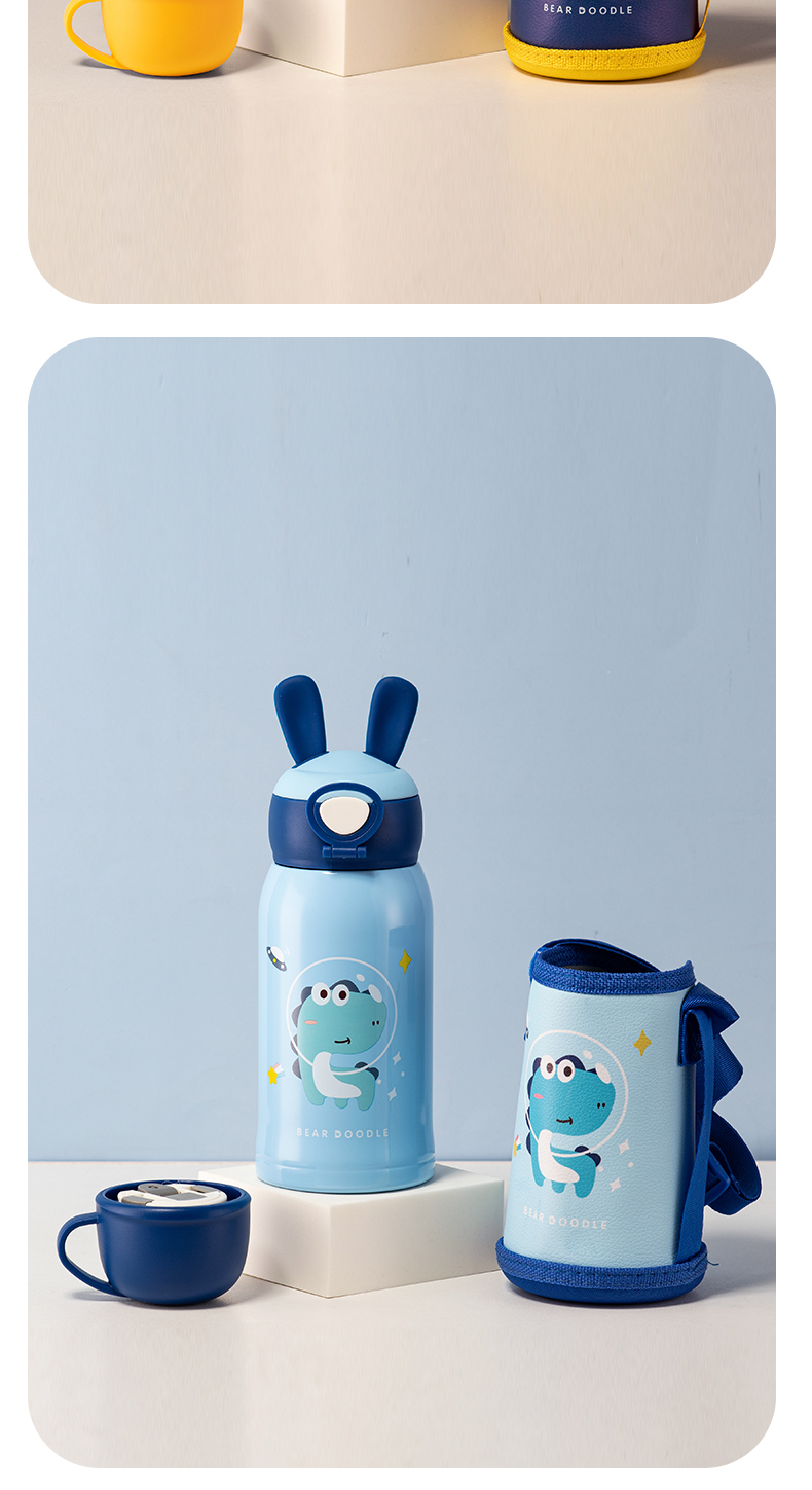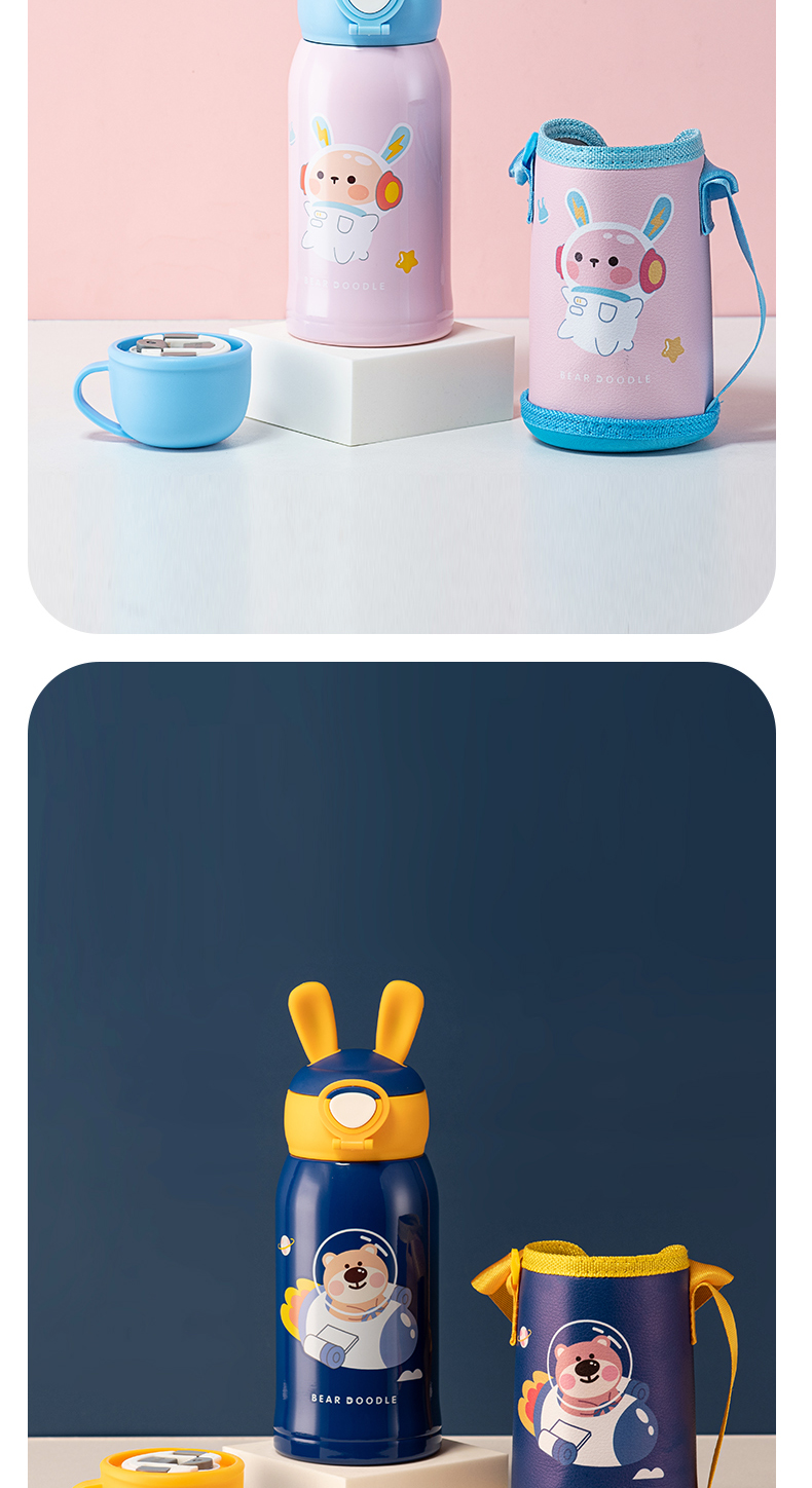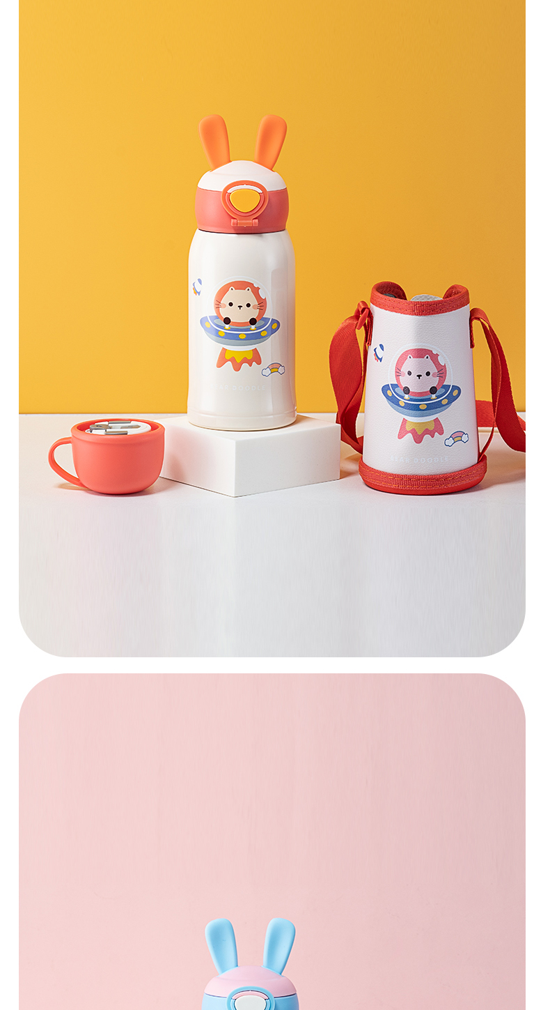 500ml小萌兔兔耳儿童保温杯304不锈钢一杯两盖吸管水壶