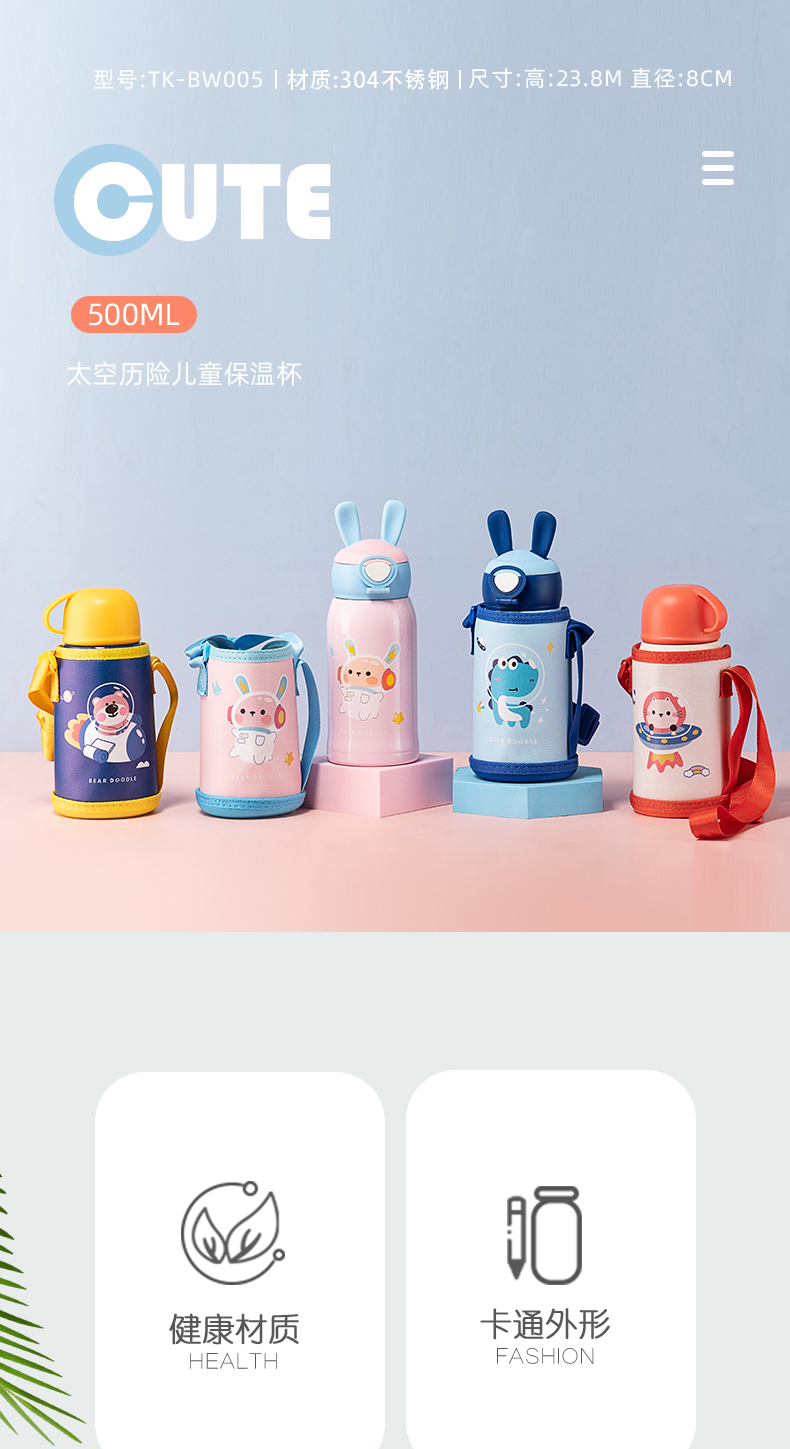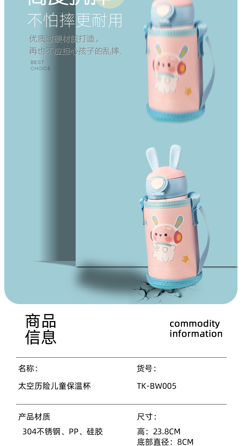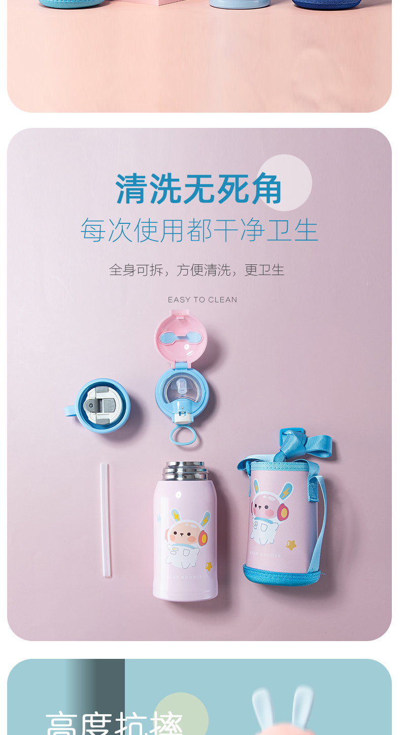 500ml小萌兔兔耳儿童保温杯304不锈钢一杯两盖吸管水壶