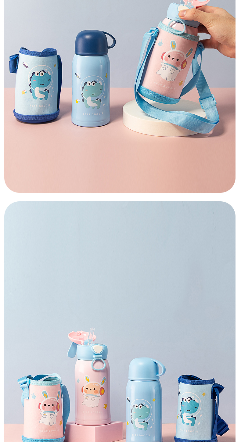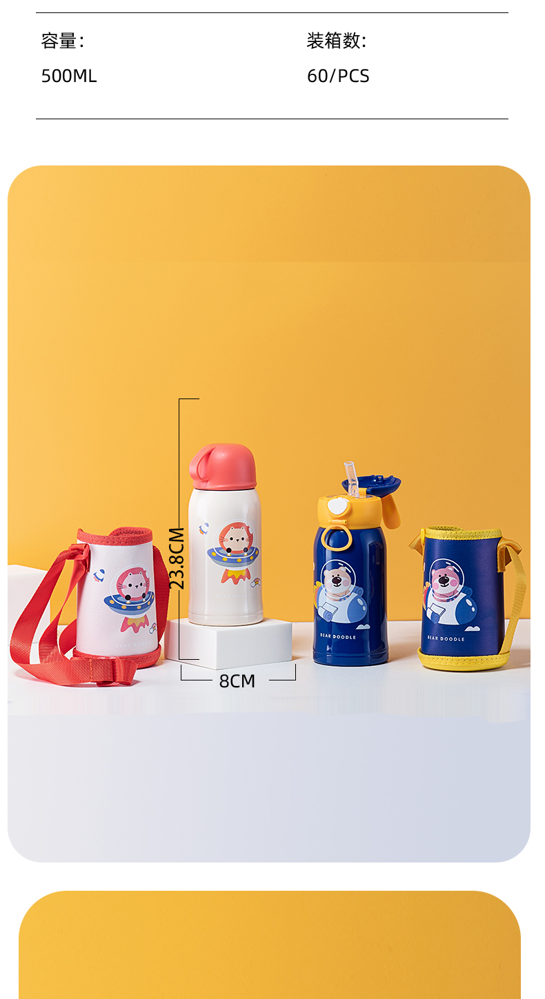 500ML猫可可游园记儿童保温杯304不锈钢可爱吸管杯