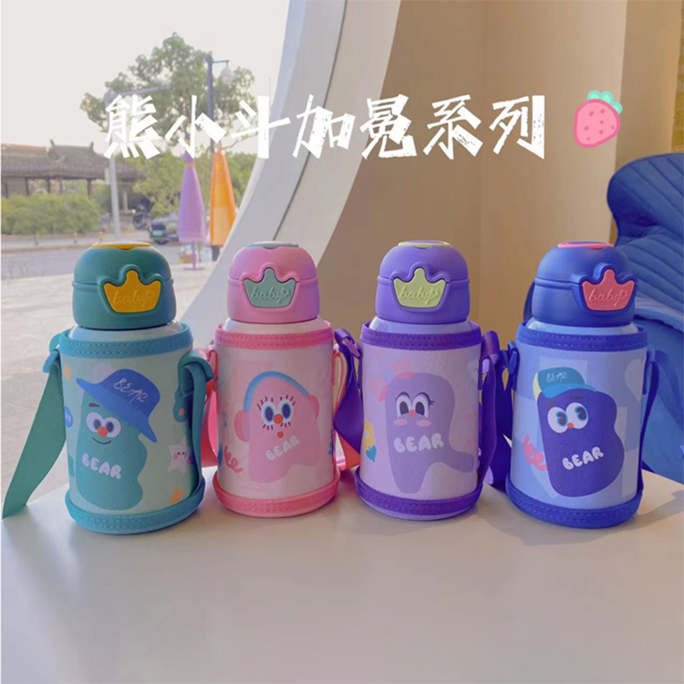 500ML普通盖硅胶套果冻吸管盖儿童保温杯可爱吸管水杯