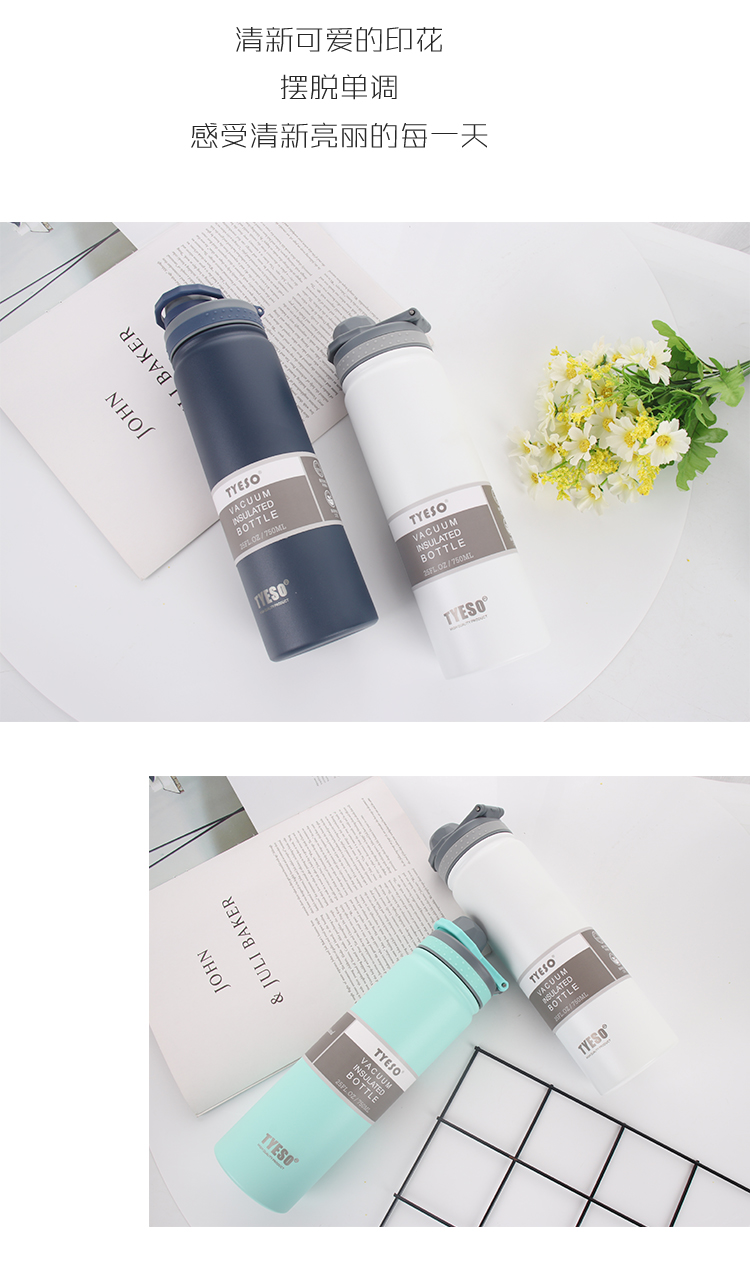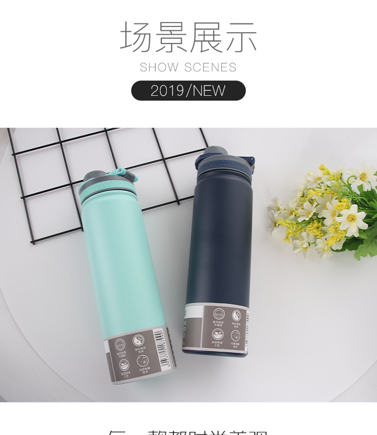 600ML喷塑提手保温杯304不锈钢大容量简约运动水杯