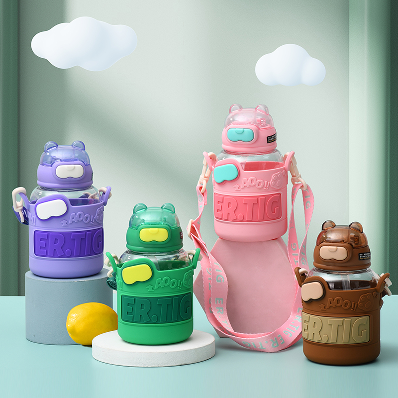 样品星兔创意卡通水杯儿童弹跳吸管杯可爱运动户外背带学生塑料杯