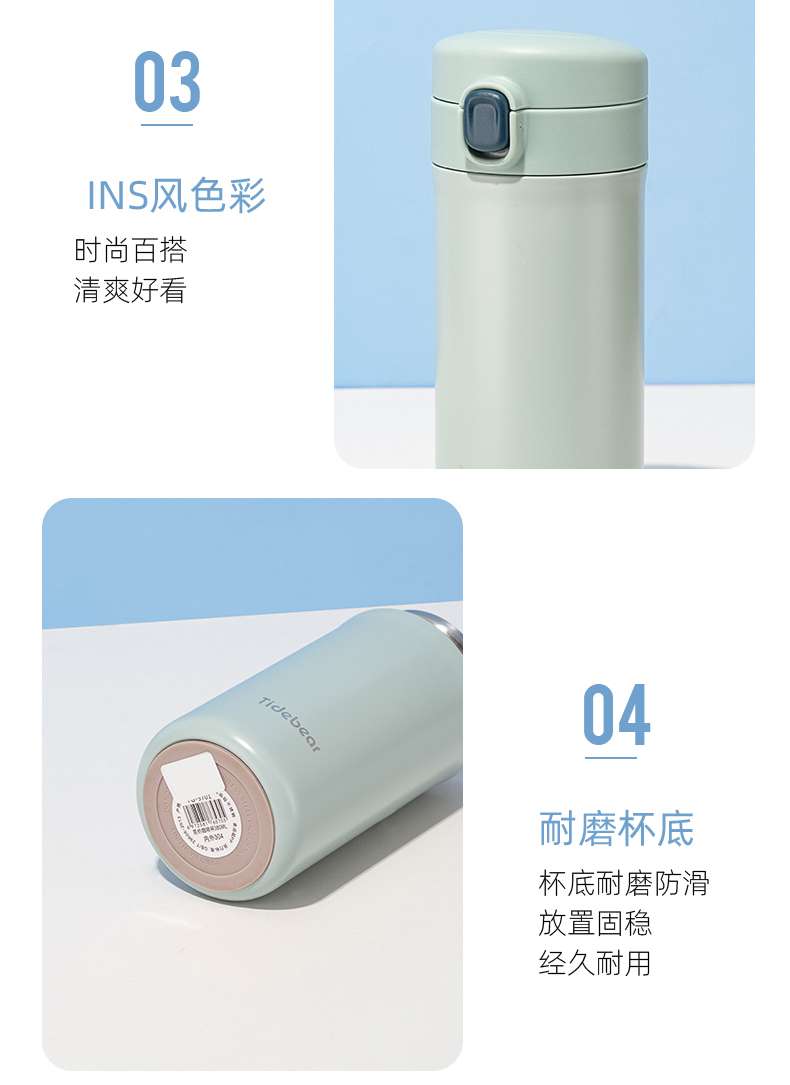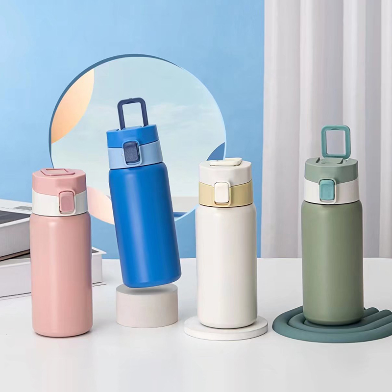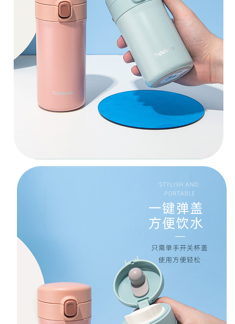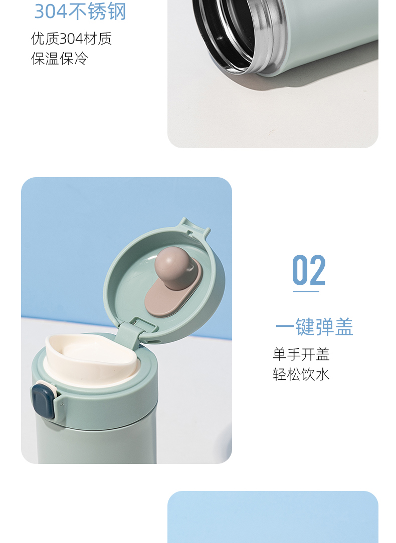 450ML简约纯色真空保温杯304不锈钢弹跳盖手提水杯