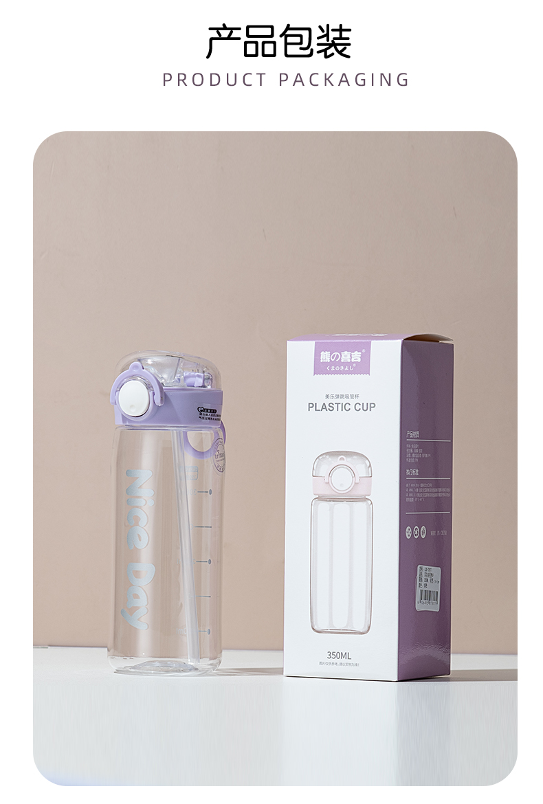 样品星兔创意卡通水杯儿童弹跳吸管杯可爱运动户外背带学生塑料杯