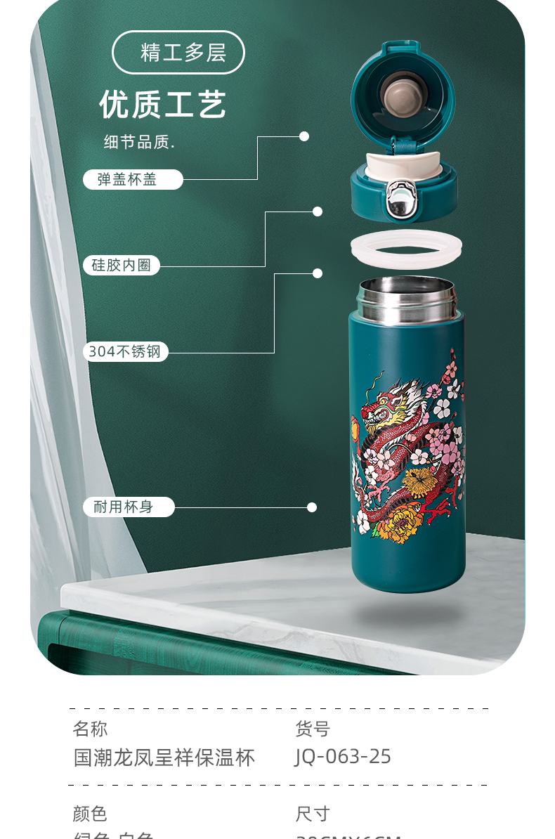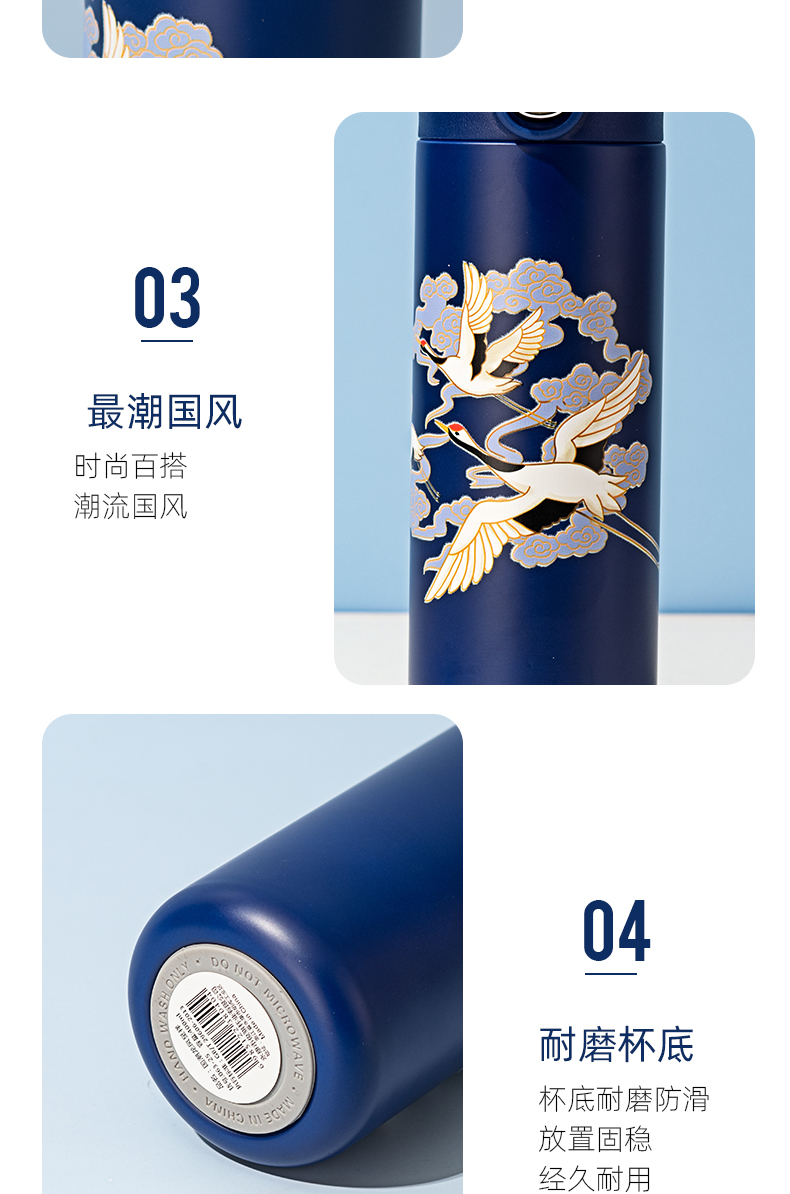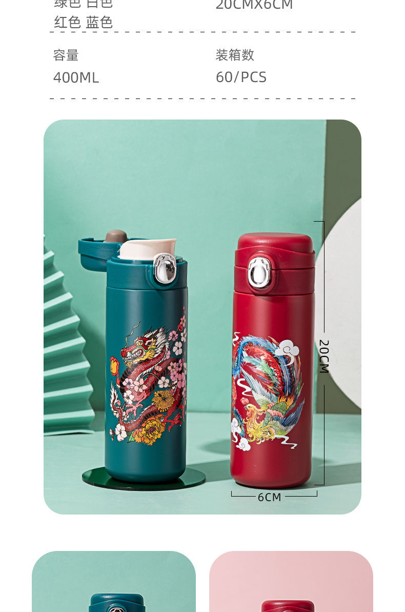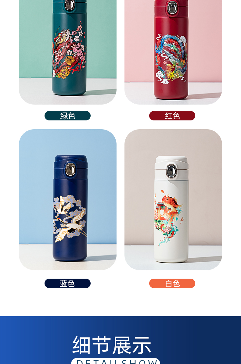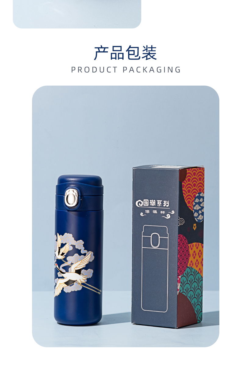 400ML国潮仙鹤保温杯个性潮流复古中国风弹盖水杯子