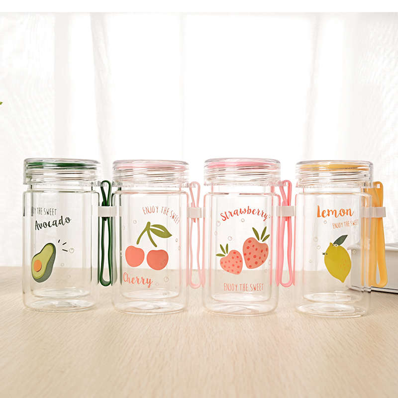 280ML欧彩水果双层玻璃杯学生韩版小清新防烫随手杯