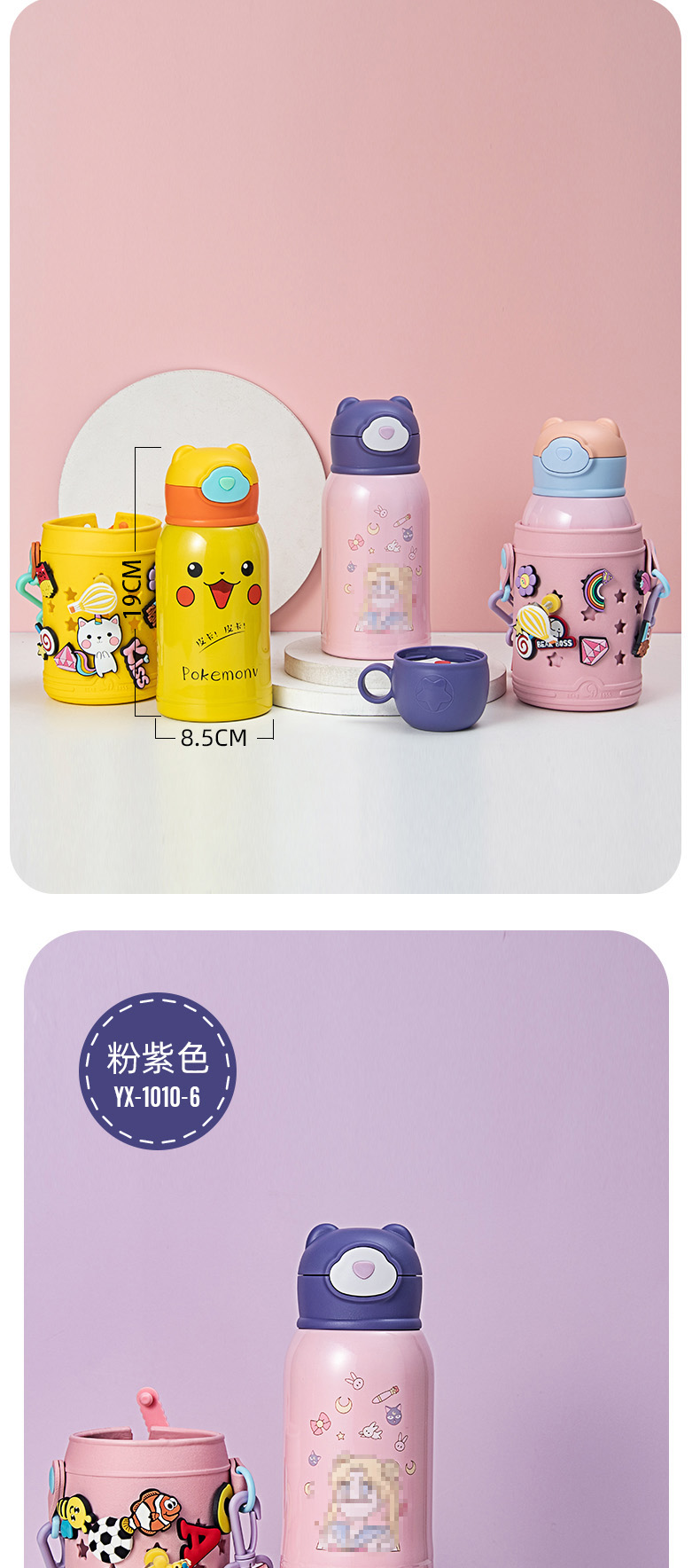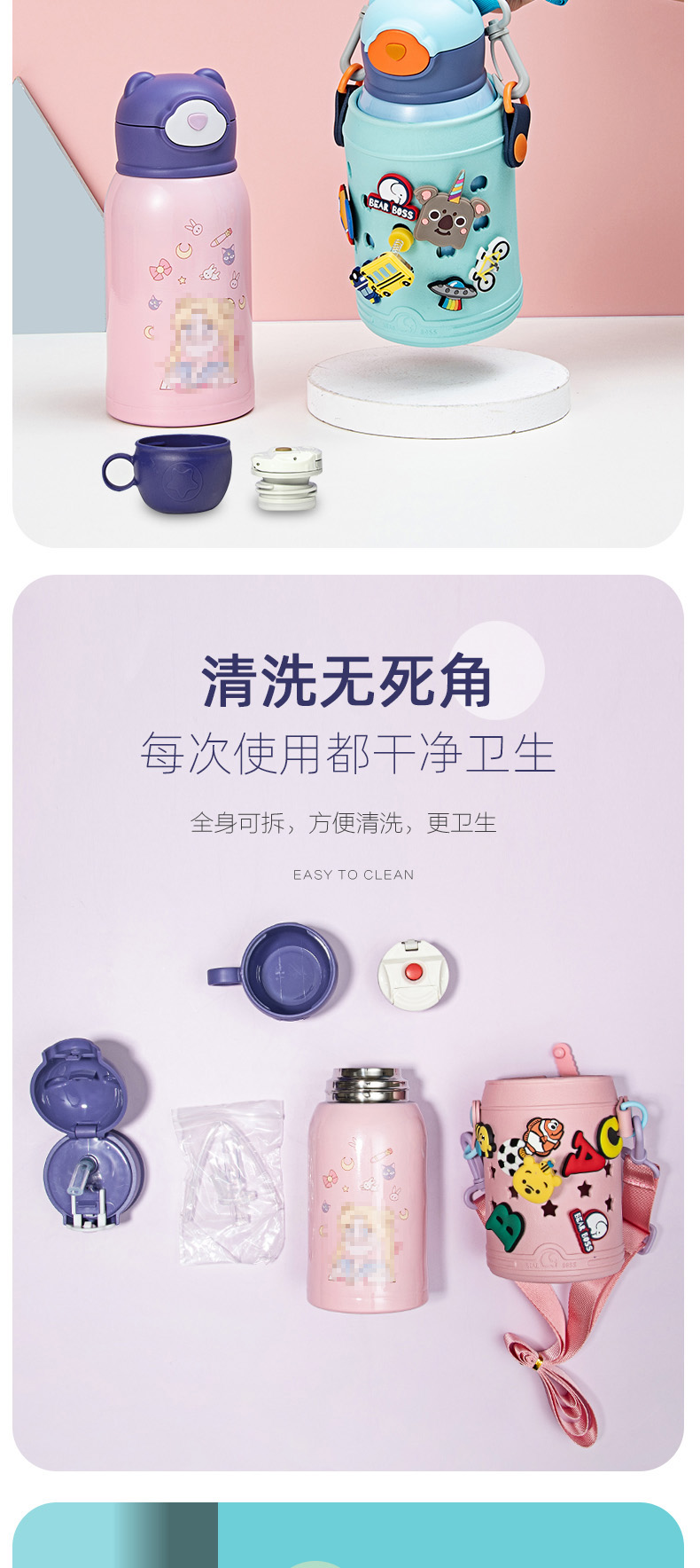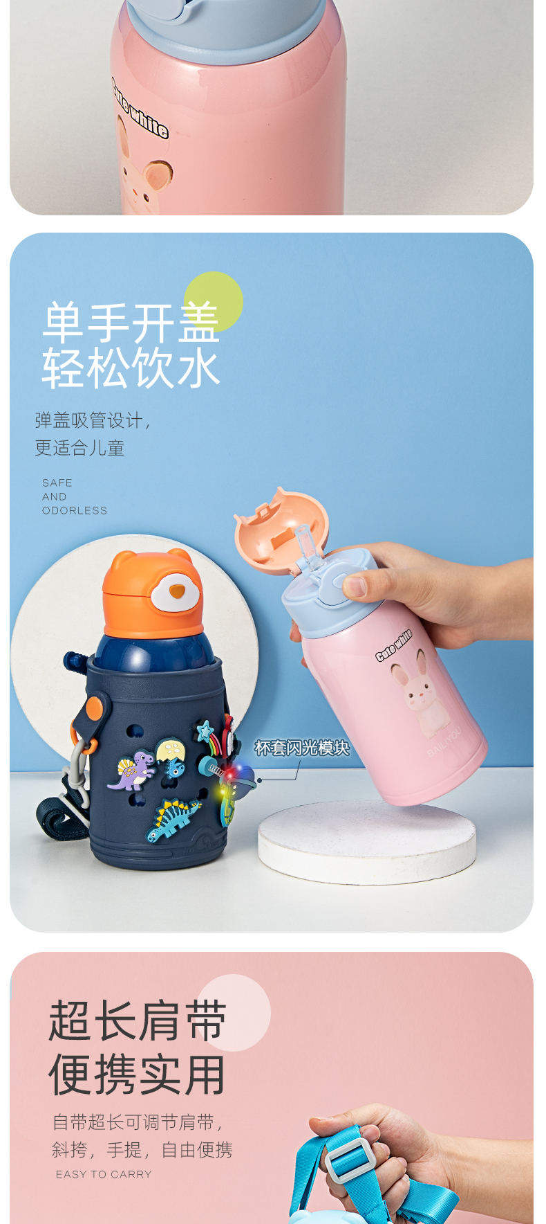 480ML道奇大耳朵兔背带保温杯316不锈钢卡通可爱吸管杯
