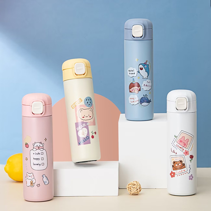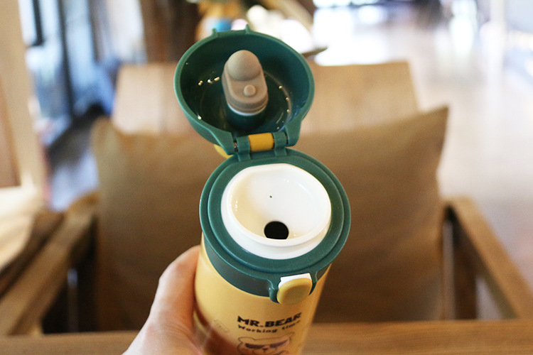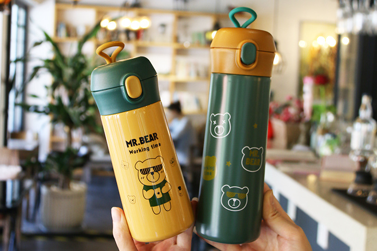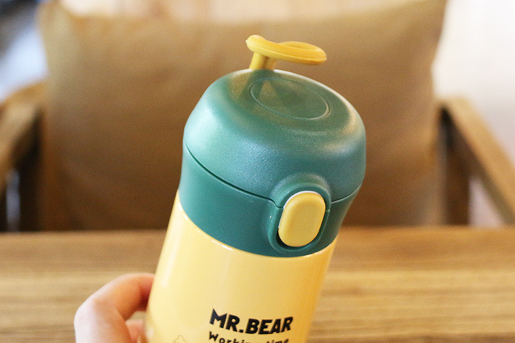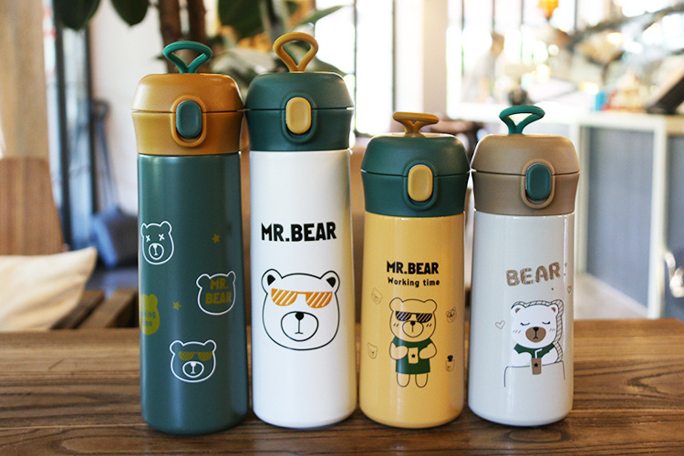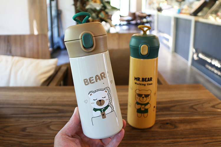 350ML小蒙包吸管弹跳萌熊保温杯304不锈钢简约水杯
