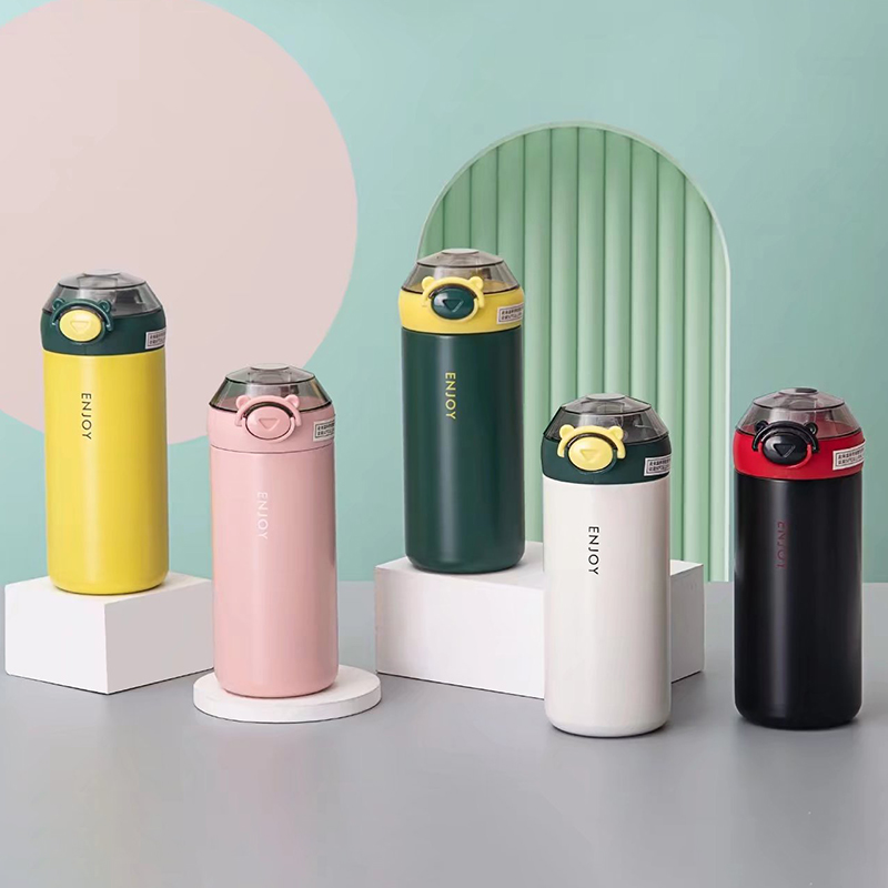 400ML茉一弹跳盖吸管保温杯304不锈钢小清新水杯