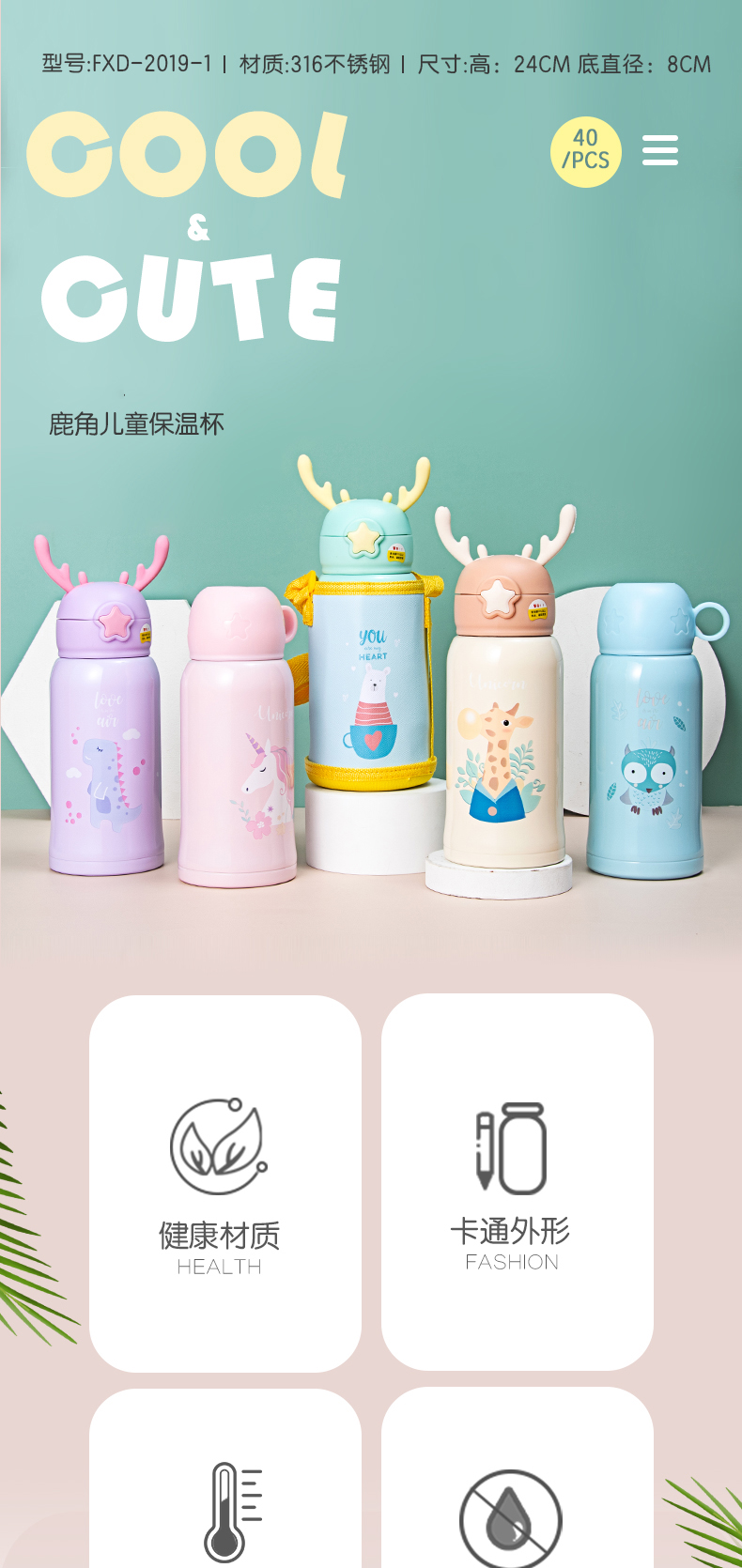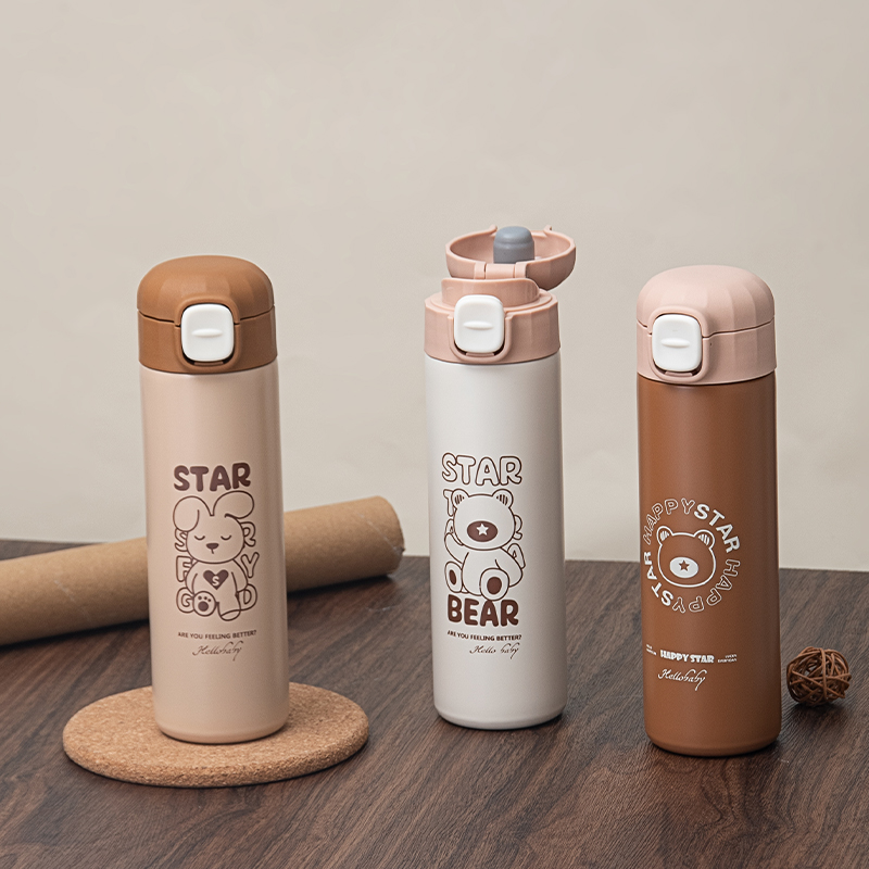 450ML商务弹跳保温杯卡通可爱少女心ins风创意水杯子