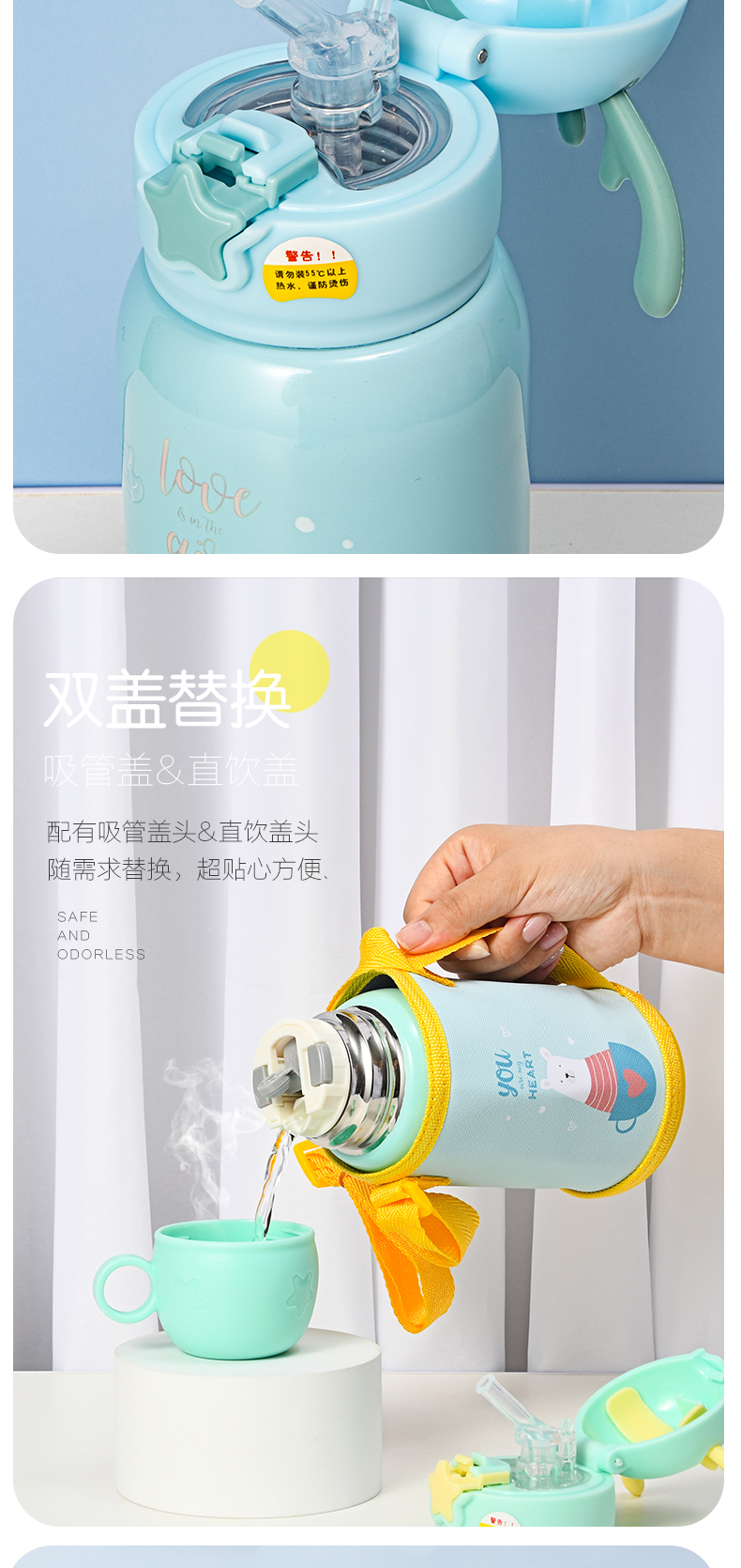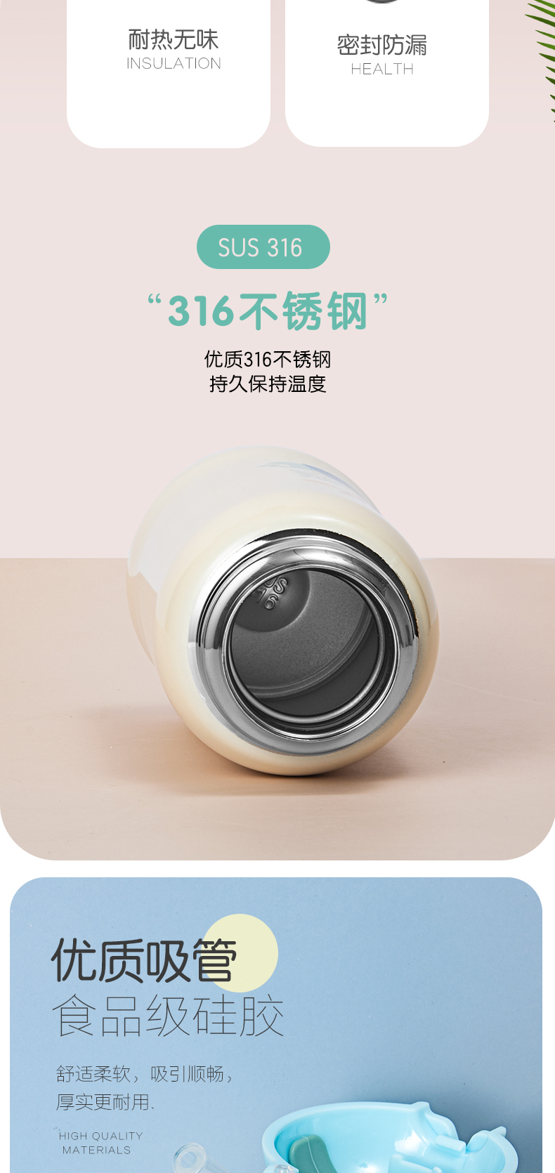 500ML普通盖硅胶套果冻吸管盖儿童保温杯可爱吸管水杯