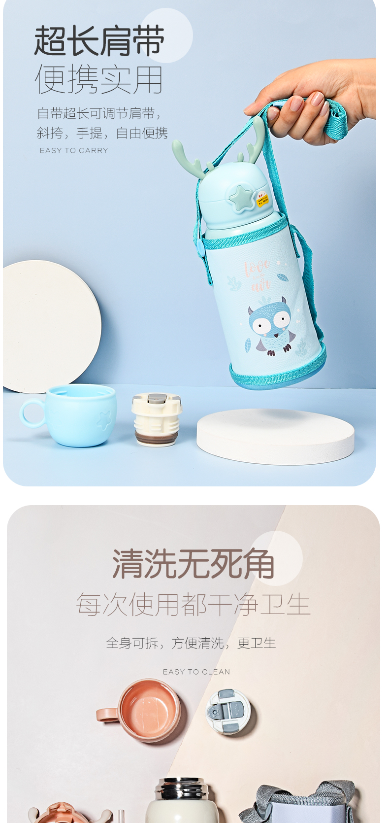 500ml小萌兔兔耳儿童保温杯304不锈钢一杯两盖吸管水壶