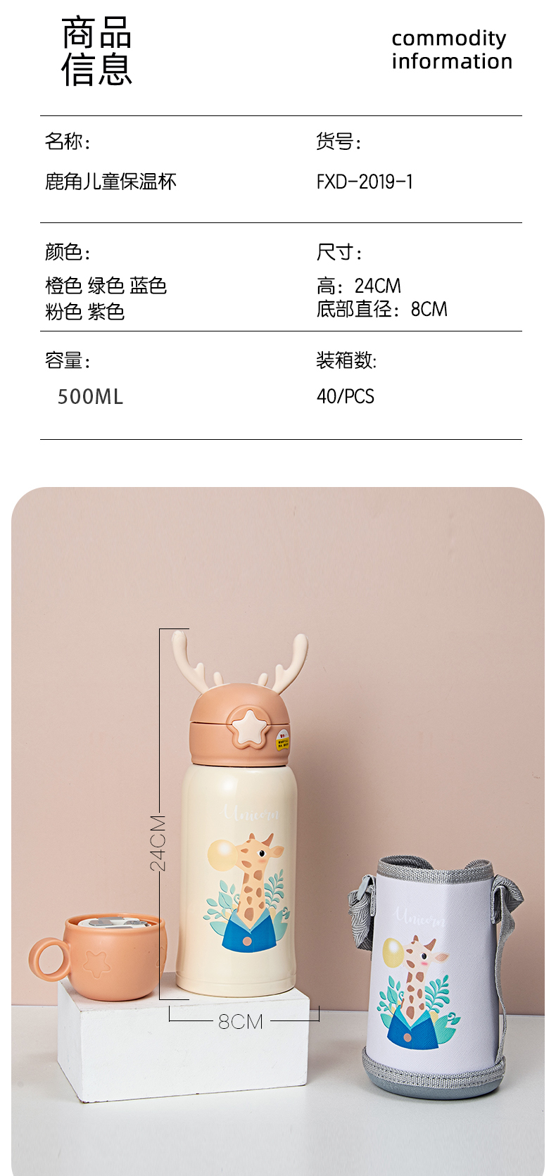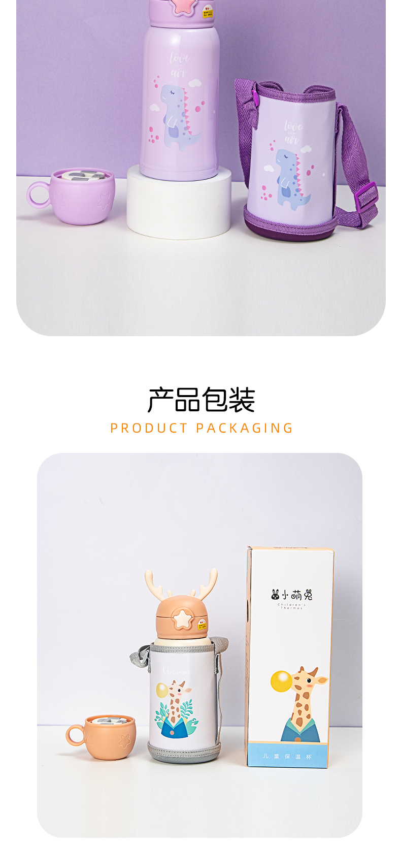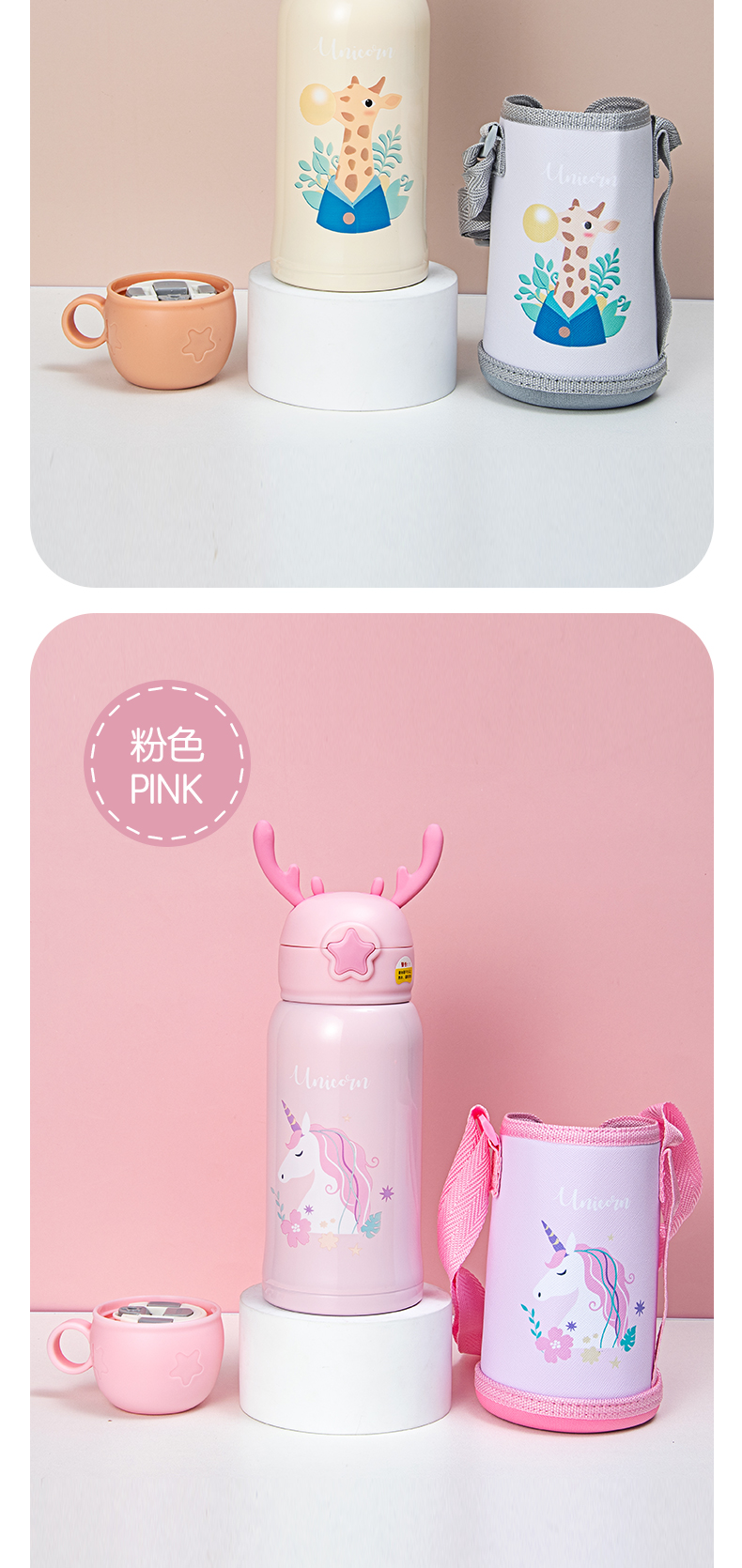 500ML卡通加冕系列儿童保温杯304不锈钢一杯两盖水杯