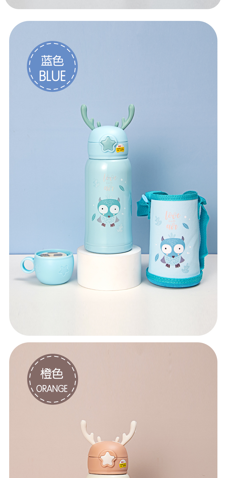 600ML云彩显温书包儿童保温杯316不锈钢小学生水杯