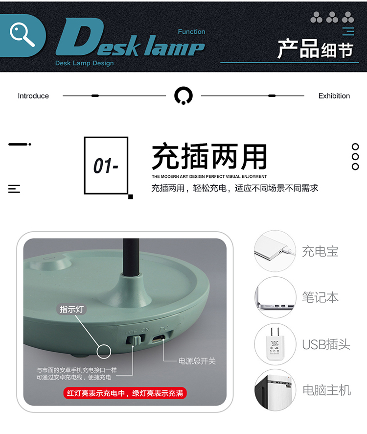 1003触摸感应台灯夹子护眼LED阅读灯USB充电小夜灯