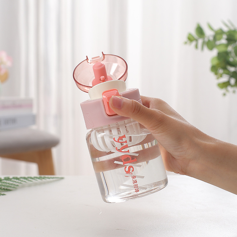 可爱迷你便携儿童玻璃吸管杯男女学生早餐牛奶茶杯大肚礼品杯印字