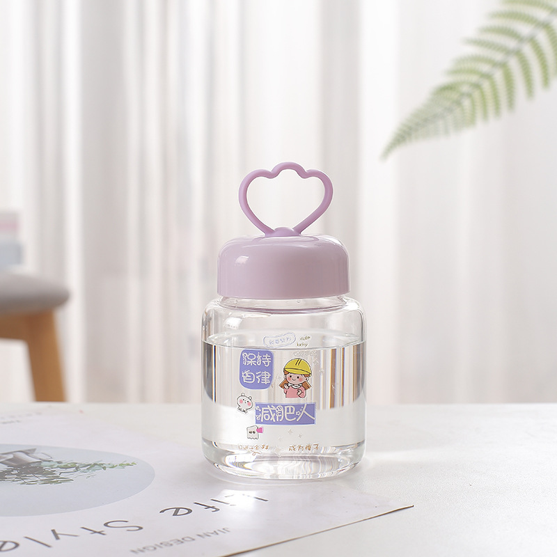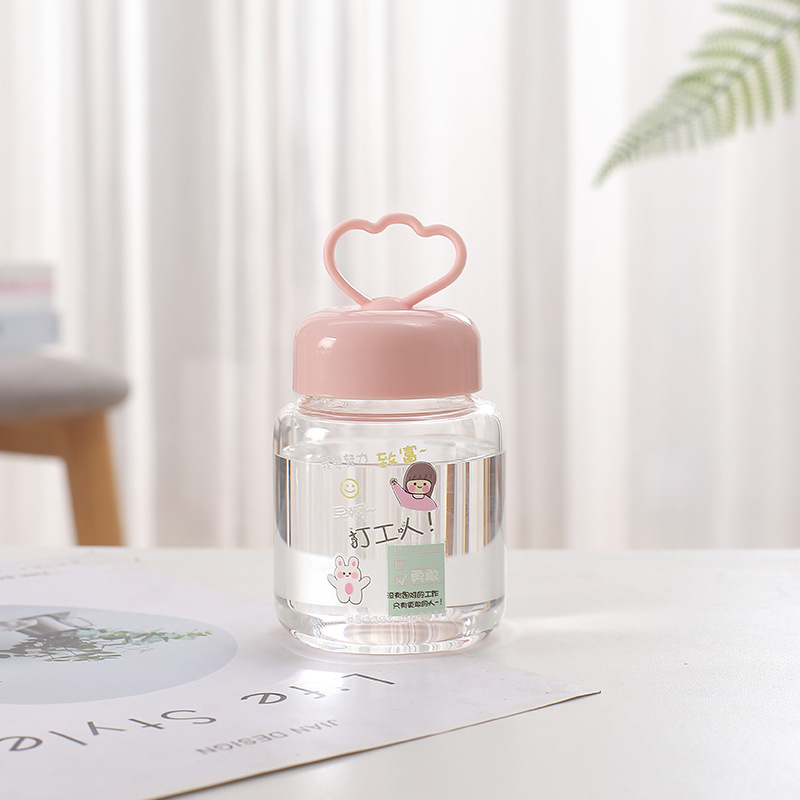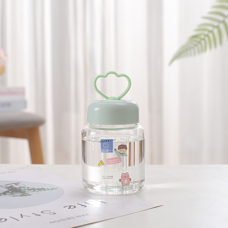 500ml西恩玻璃杯学生情侣小清新可爱便携提手水杯