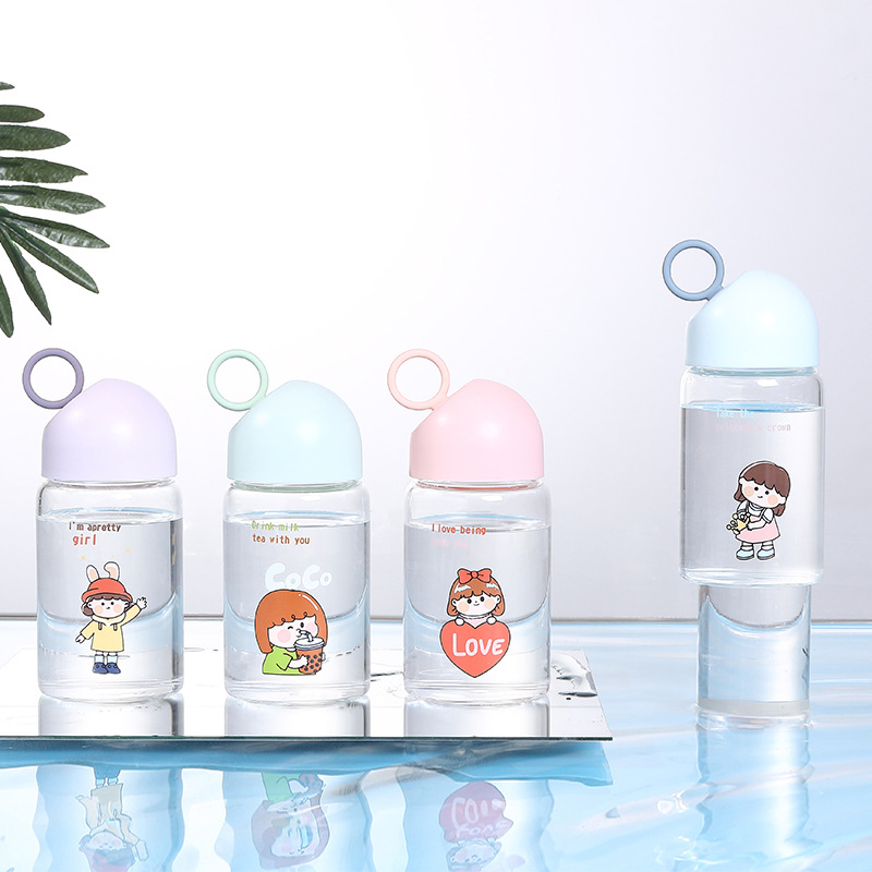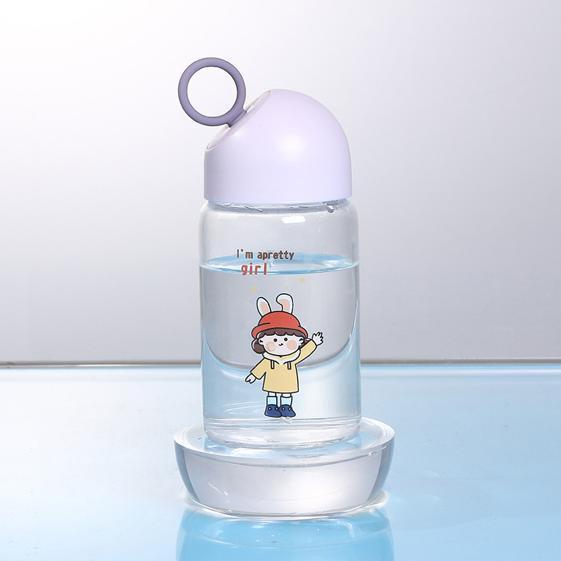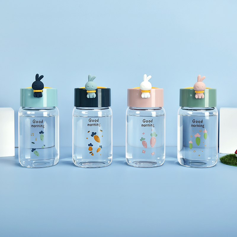 340ML可爱小兔尚萌玻璃杯个性便携水杯学生情侣杯子