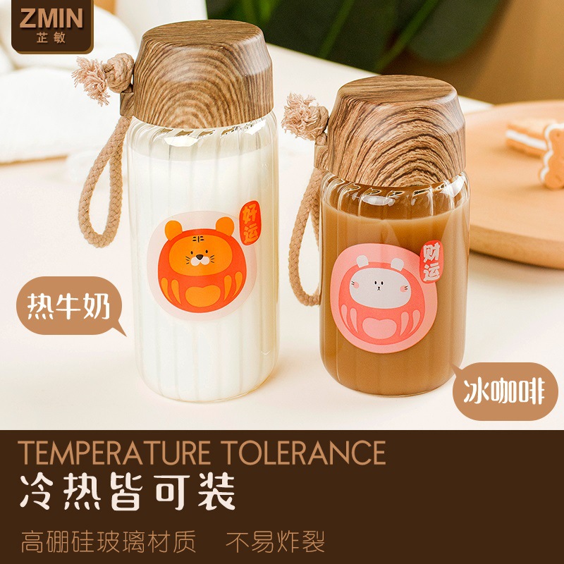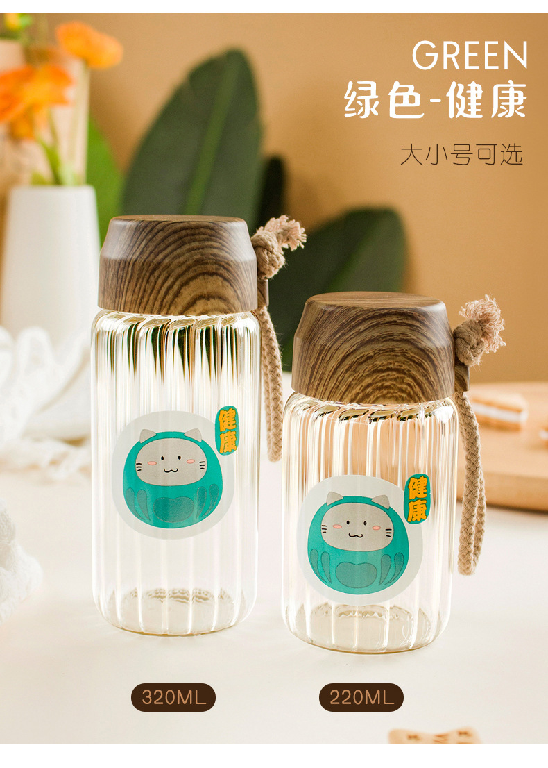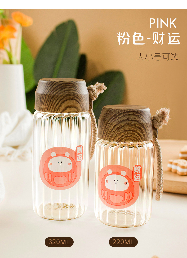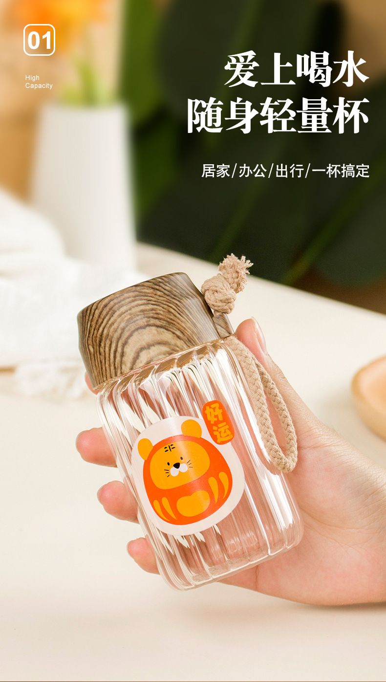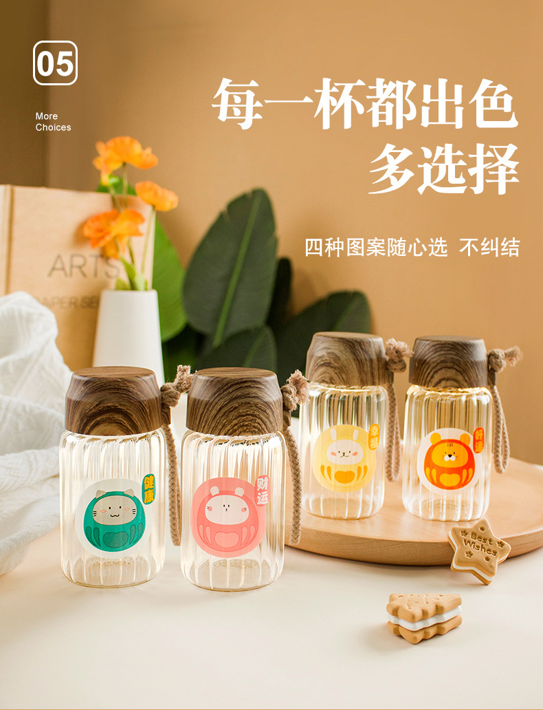 创意小清新水杯时尚办公室耐高温卡通高硼硅玻璃杯户外便携礼品杯