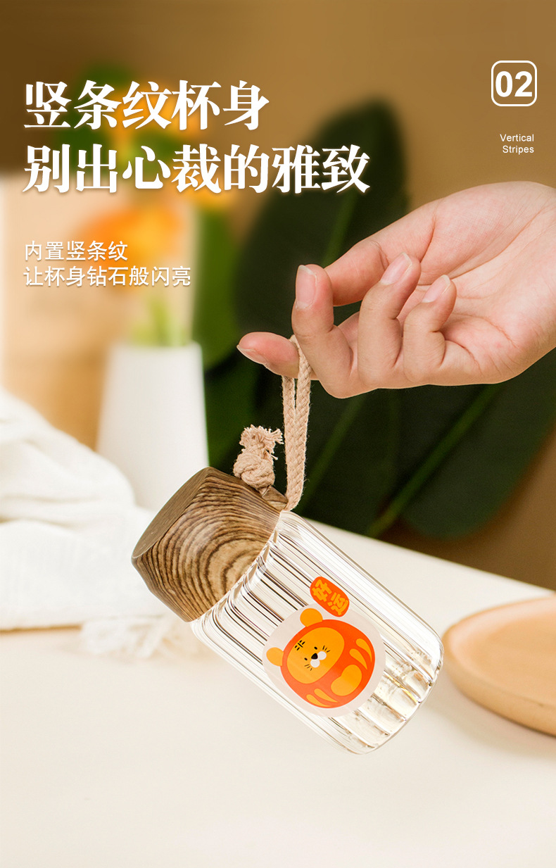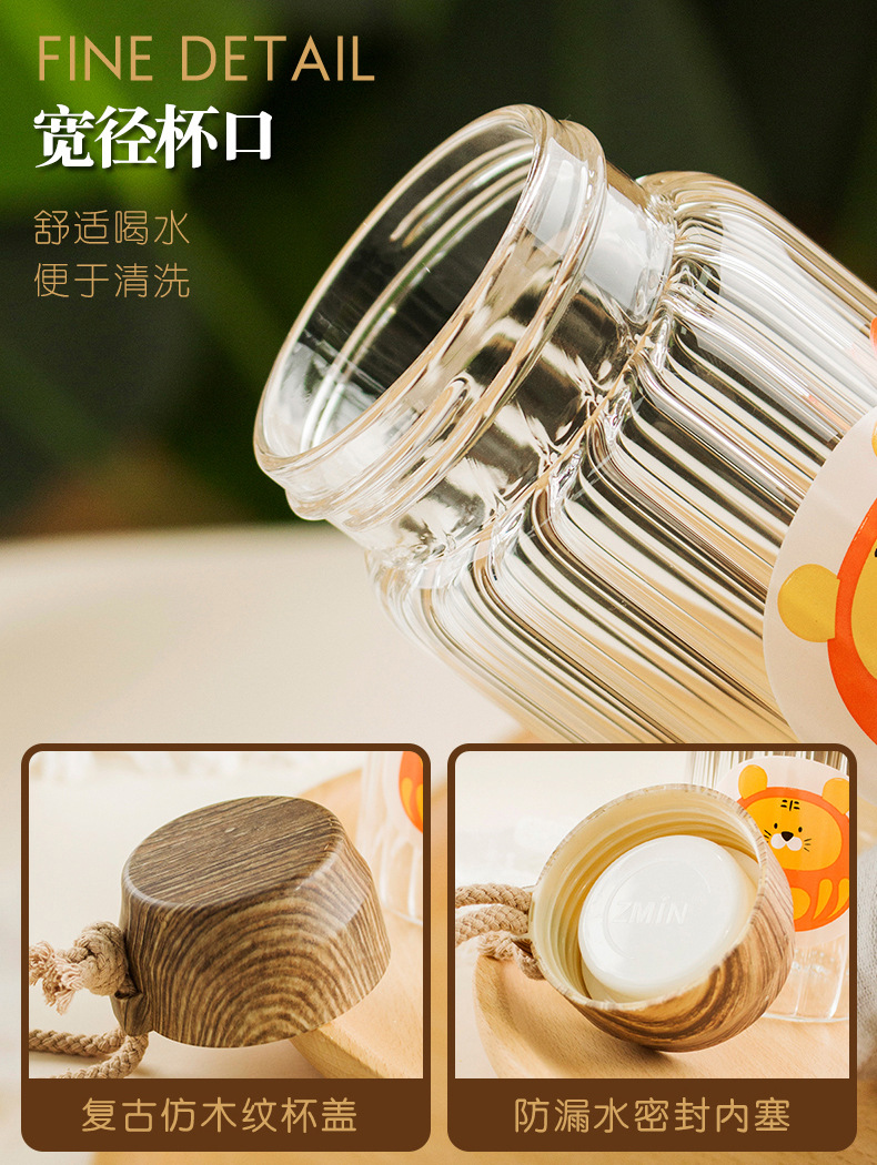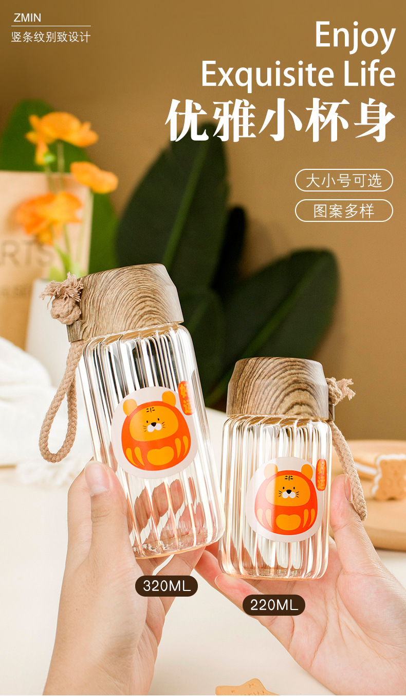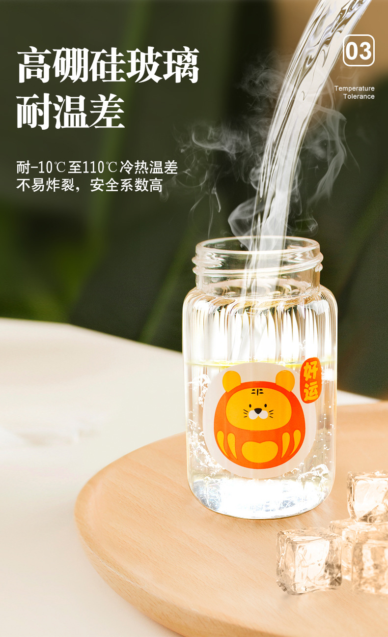 创意小清新水杯时尚办公室耐高温卡通高硼硅玻璃杯户外便携礼品杯