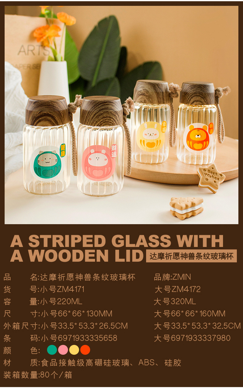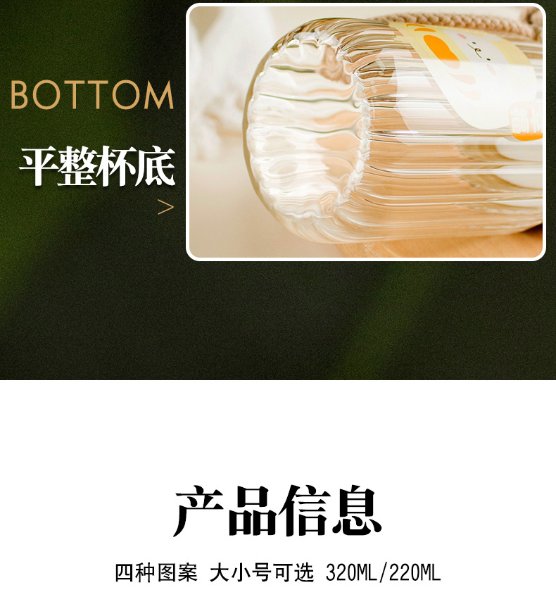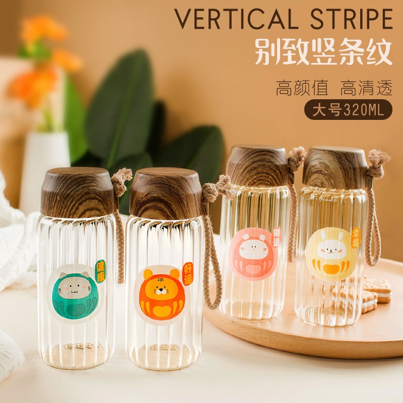 小清新创意条纹水杯时尚男女办公室耐高温卡通高硼硅玻璃杯可批发