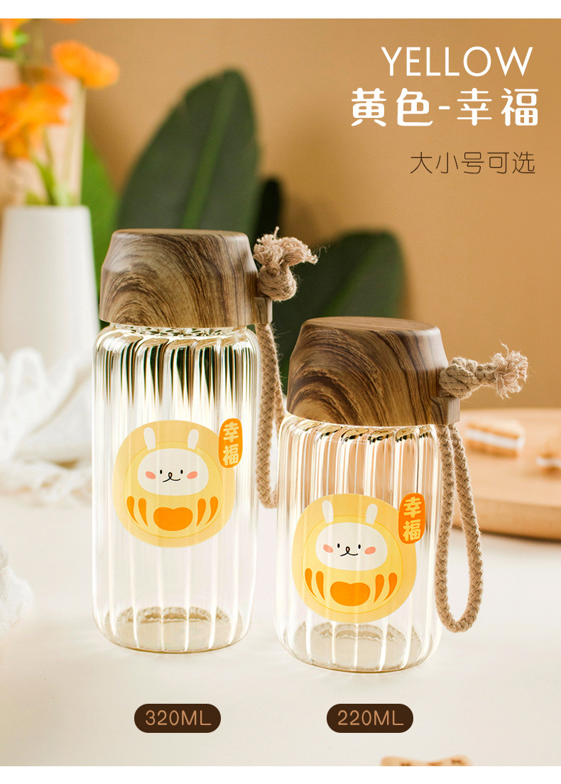 可爱韩版卡通萌萌兔高硼硅玻璃水杯男女学生随手杯子实用礼品批发