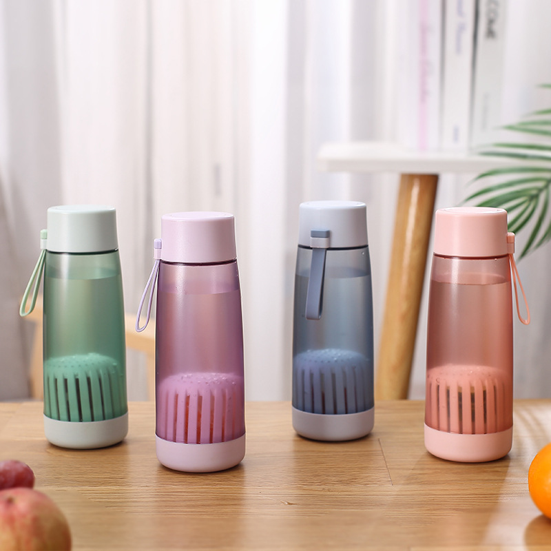 加厚双盖水果泡茶杯食品级耐高温塑料水杯女便携提手运动水杯印字