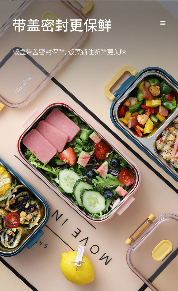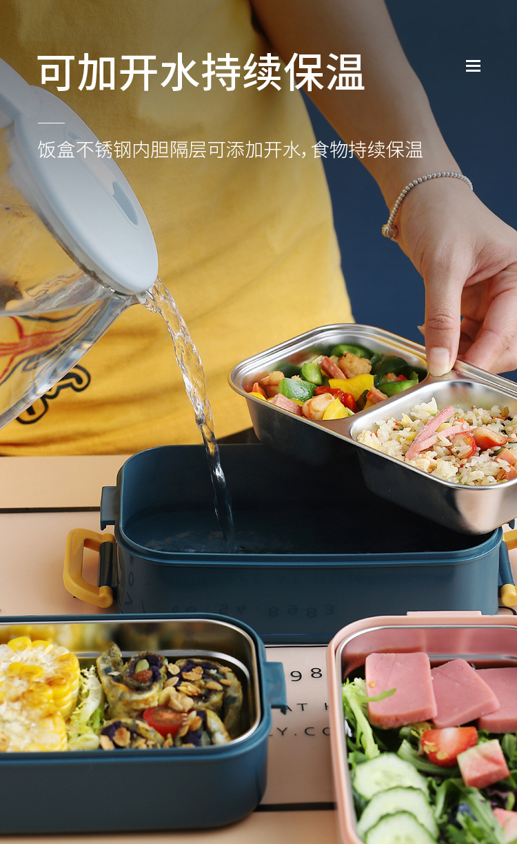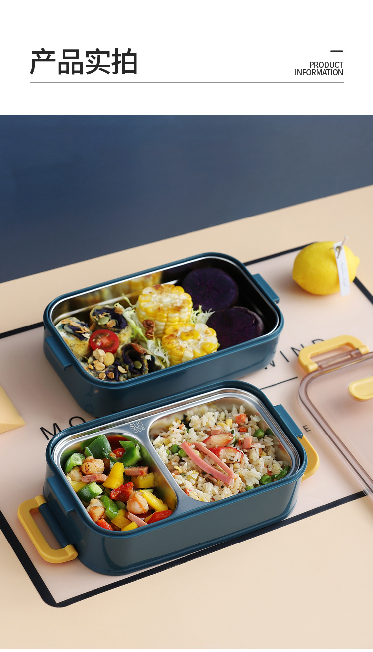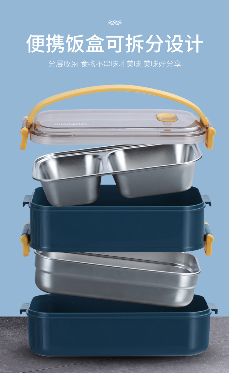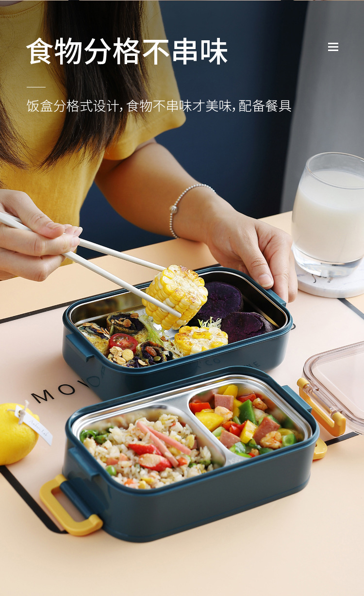 INS网红304双层不锈钢饭盒分格保温午餐盒学生成人便当盒