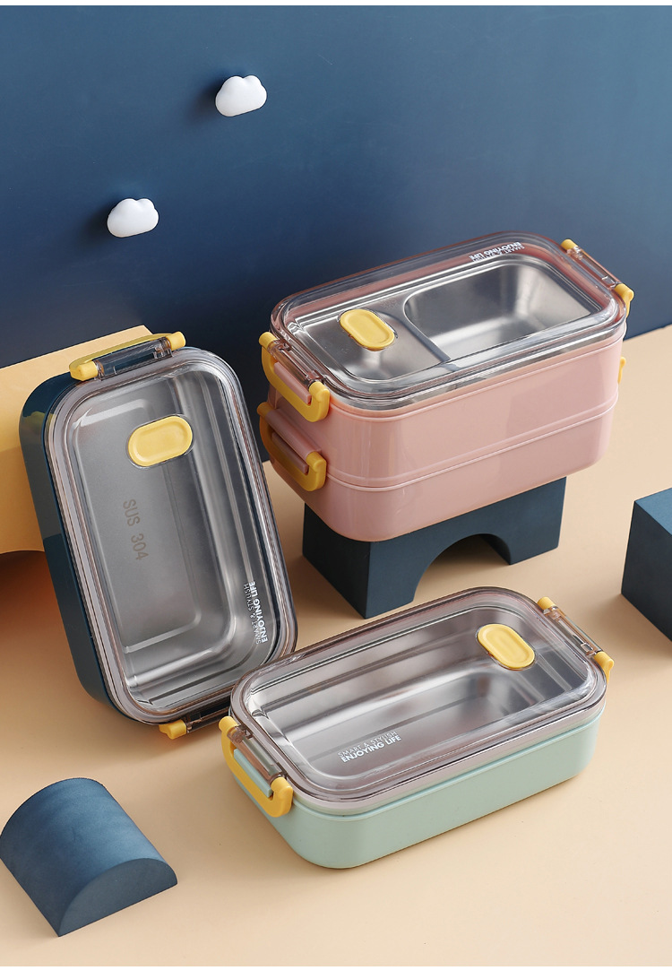 INS双层沙拉饭盒小分格上班便当盒学生便携微波炉午餐盒bento box