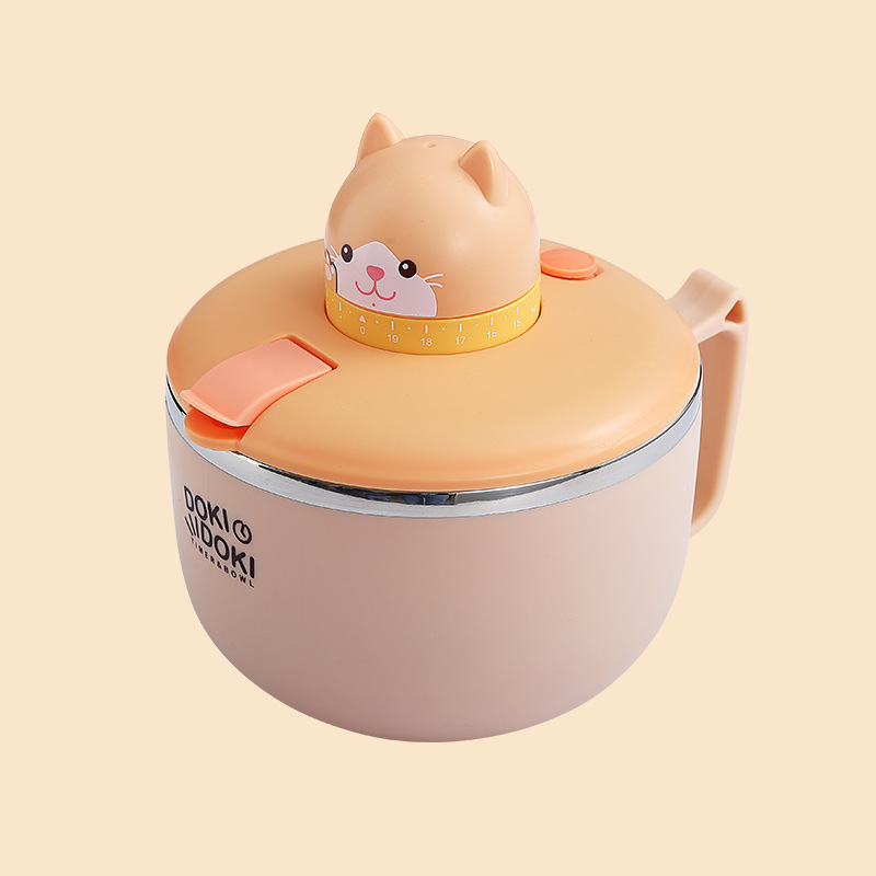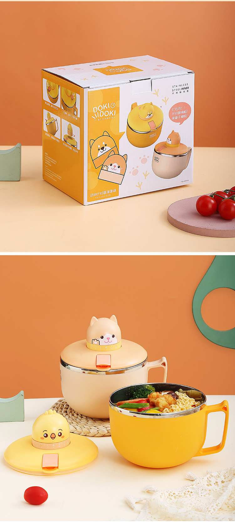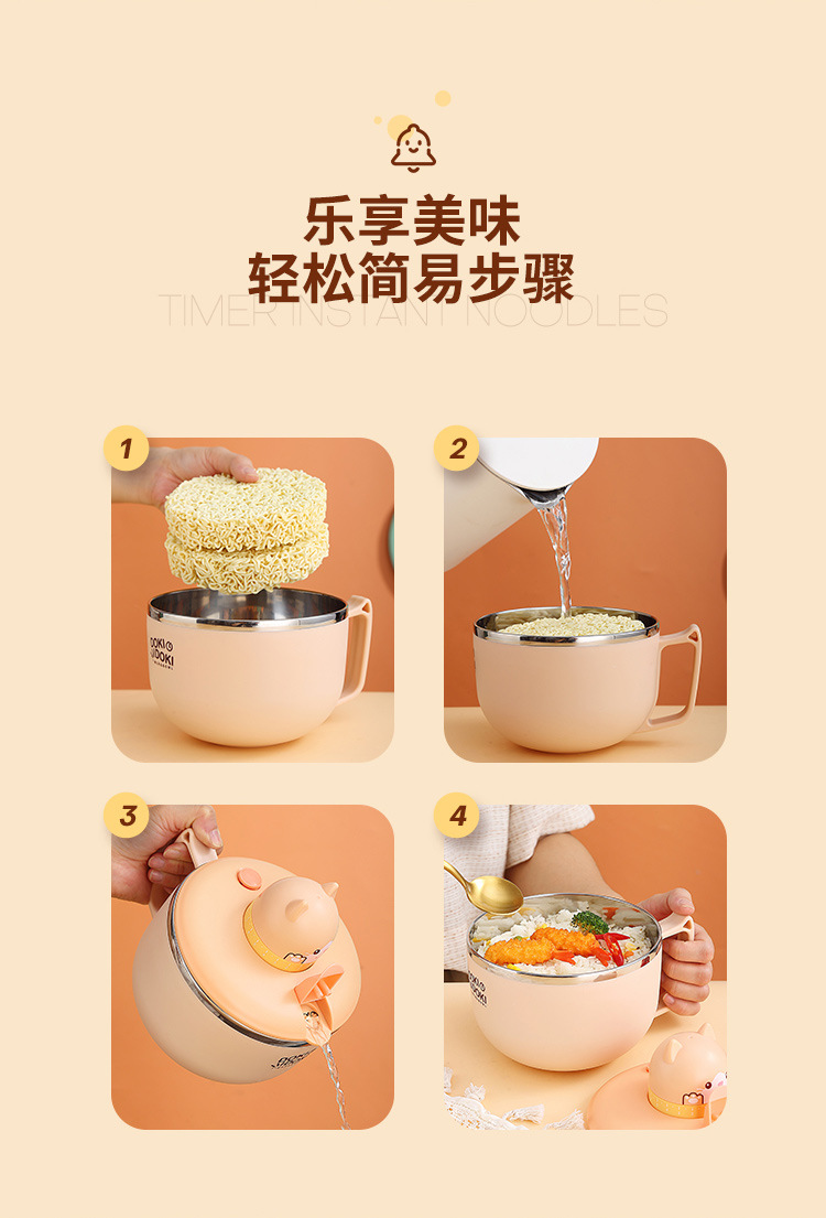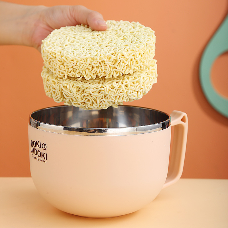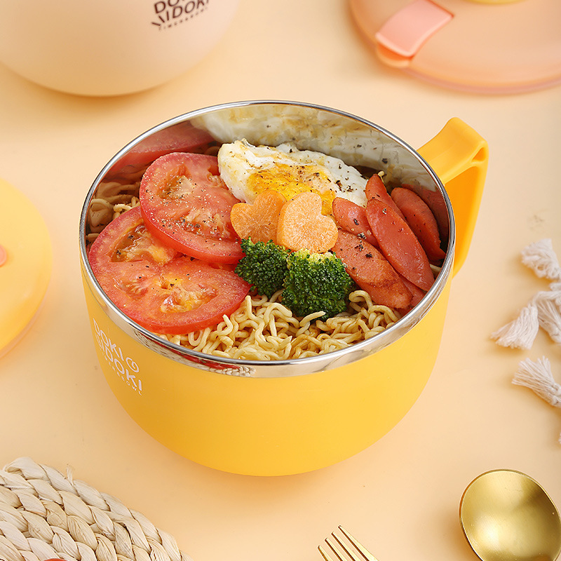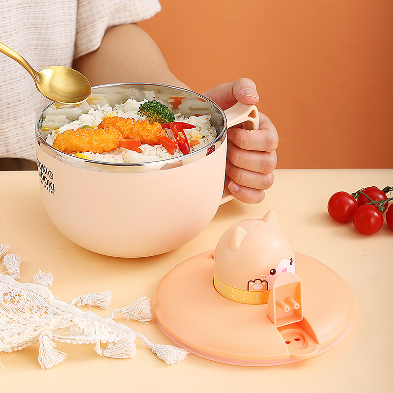 北欧创意陶瓷泡面碗带盖 家用保鲜碗 双耳汤碗可爱餐具微波炉瓷碗