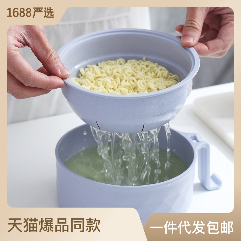 厂家直销泡面碗学生大号竹纤维拉面碗饭堂餐具套装沥汤六件套批发