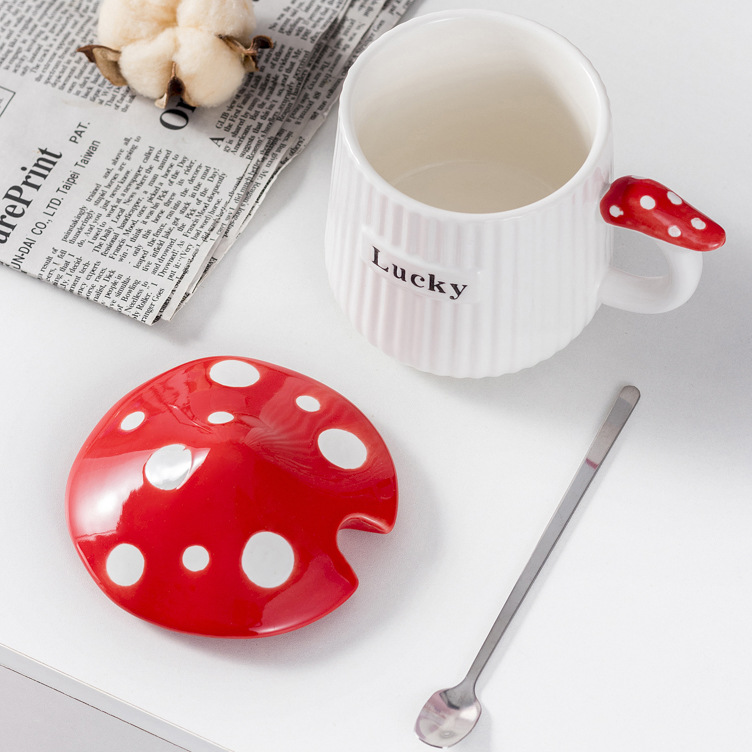 陶瓷杯简约风创意杯子家用马克杯水杯牛奶杯办公室咖啡杯带盖勺