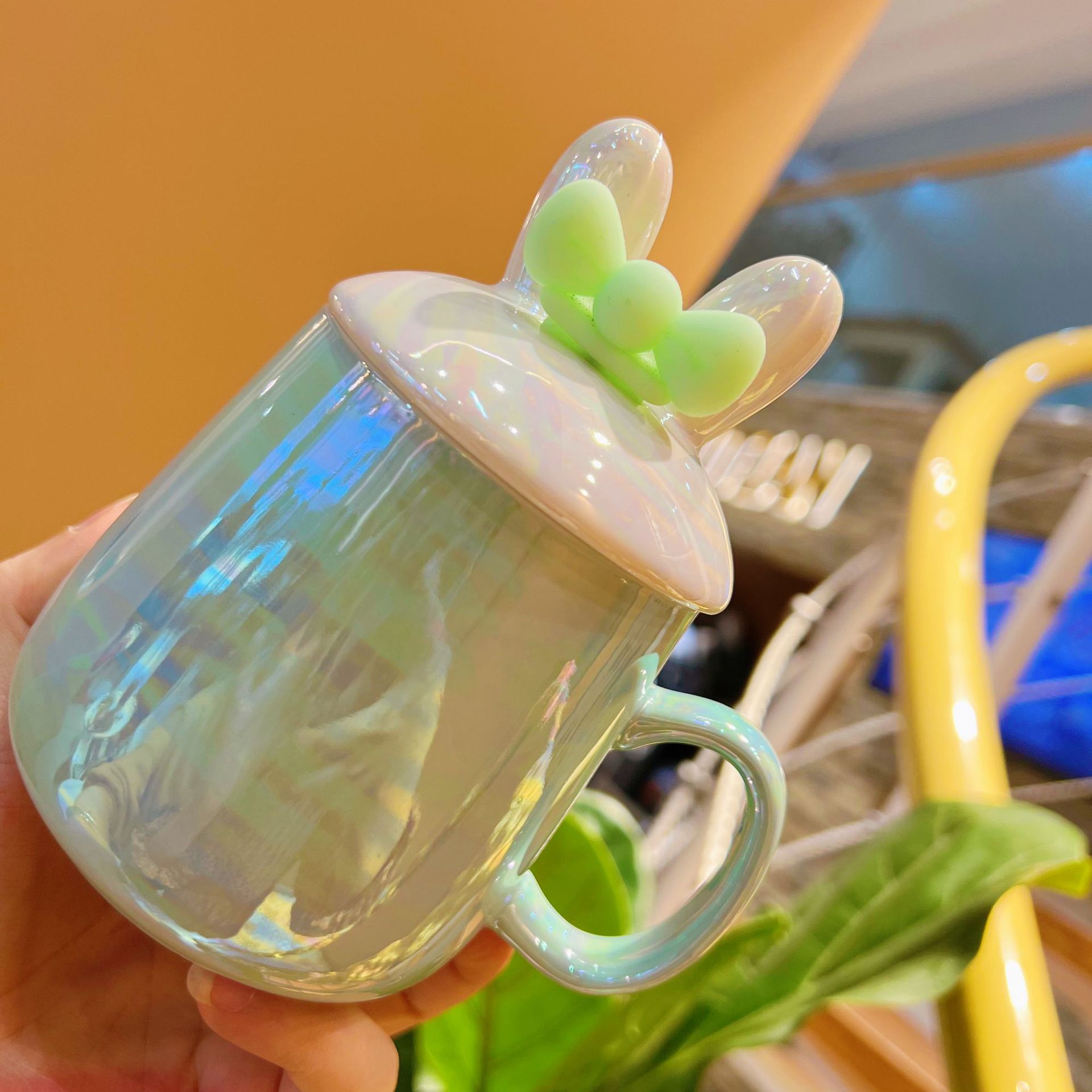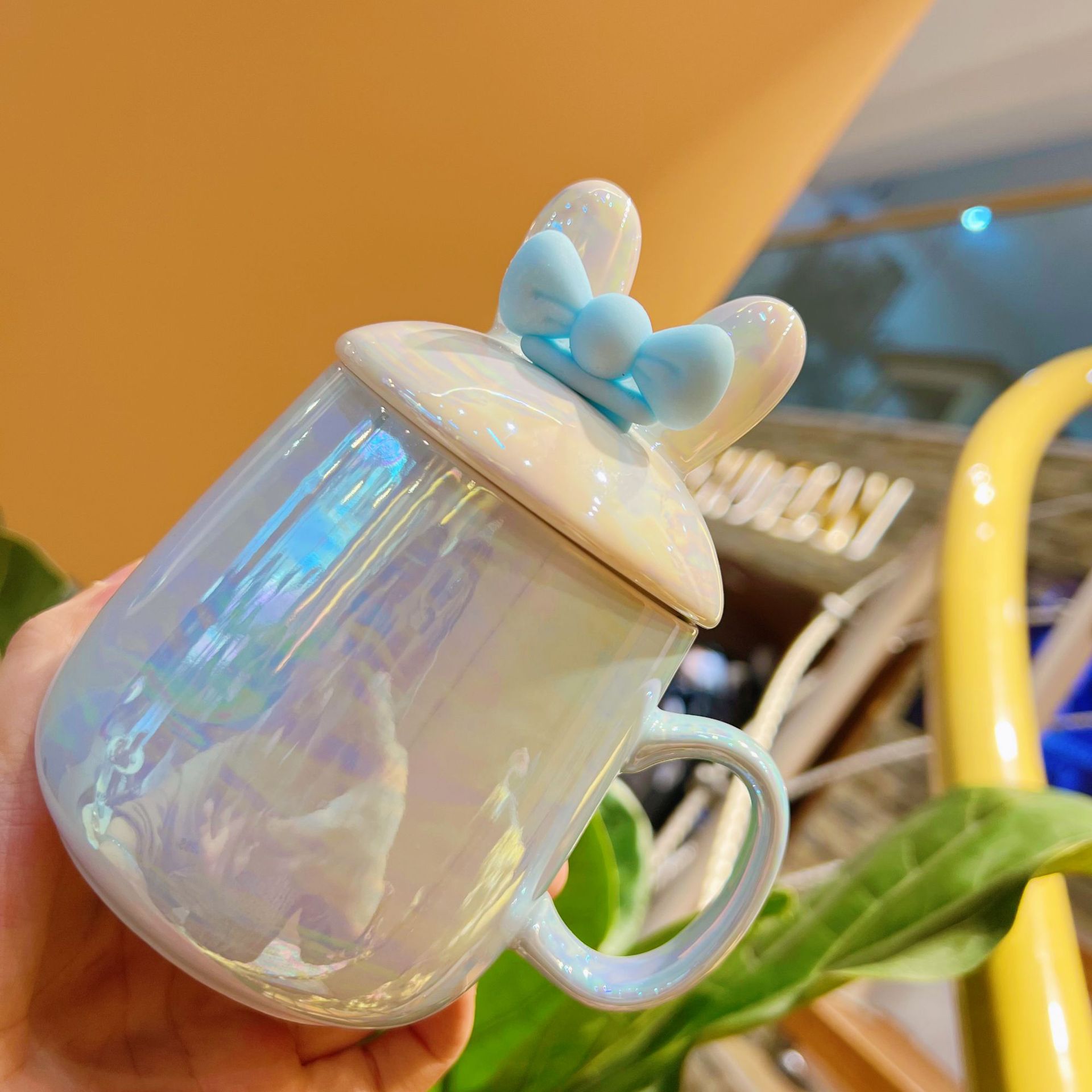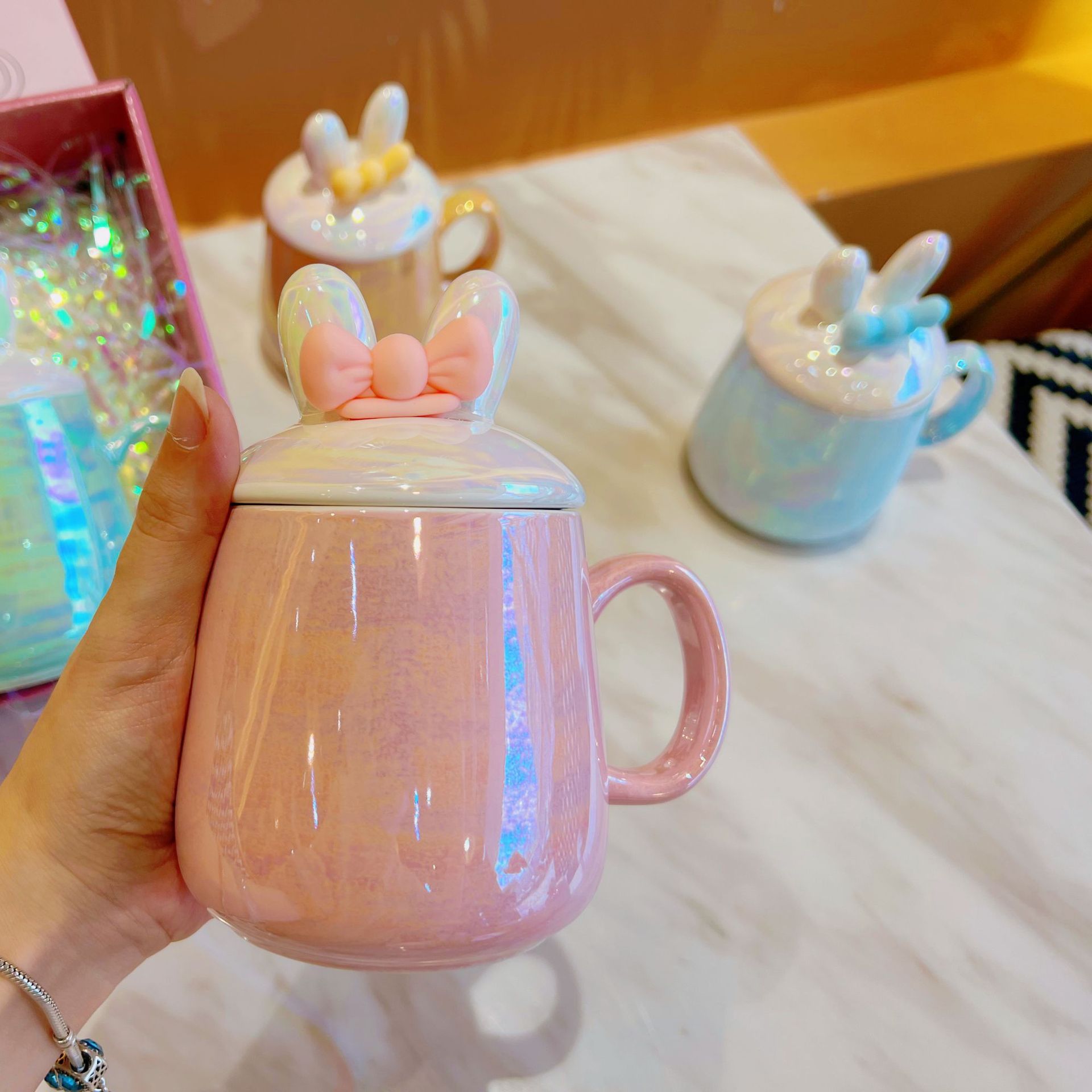 夏季杯子ins大容量带盖水杯珍珠色系陶瓷马克杯情侣杯家用咖啡杯