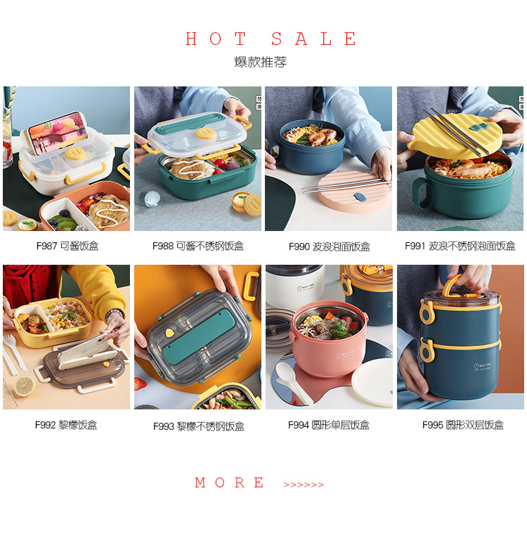 方形简约便携便当盒不锈钢午餐盒打工人便签午饭盒成人饭盒批发