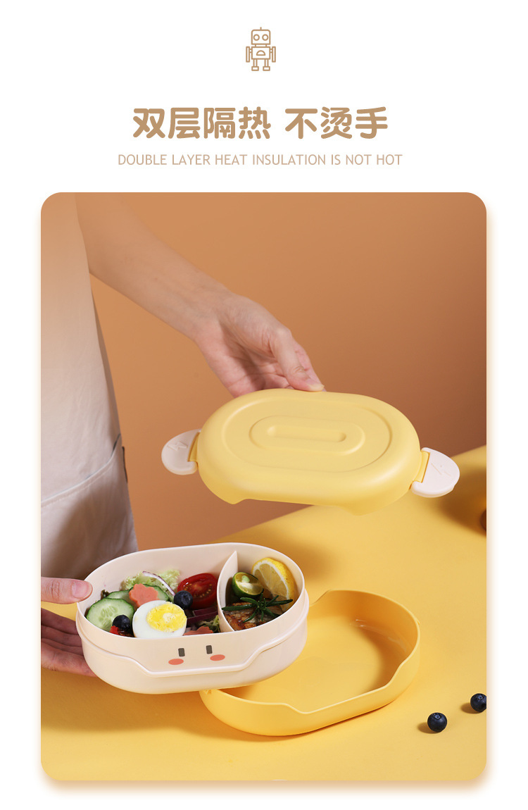 INS双层沙拉饭盒小分格上班便当盒学生便携微波炉午餐盒bento box