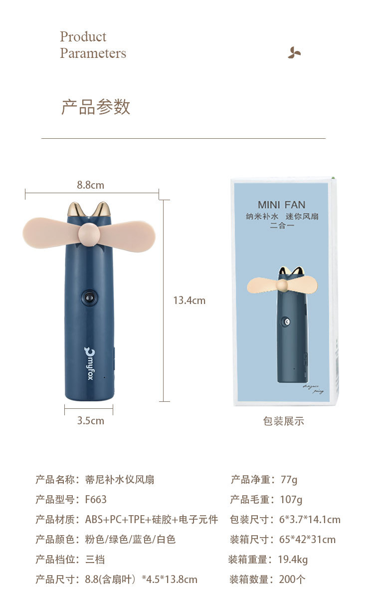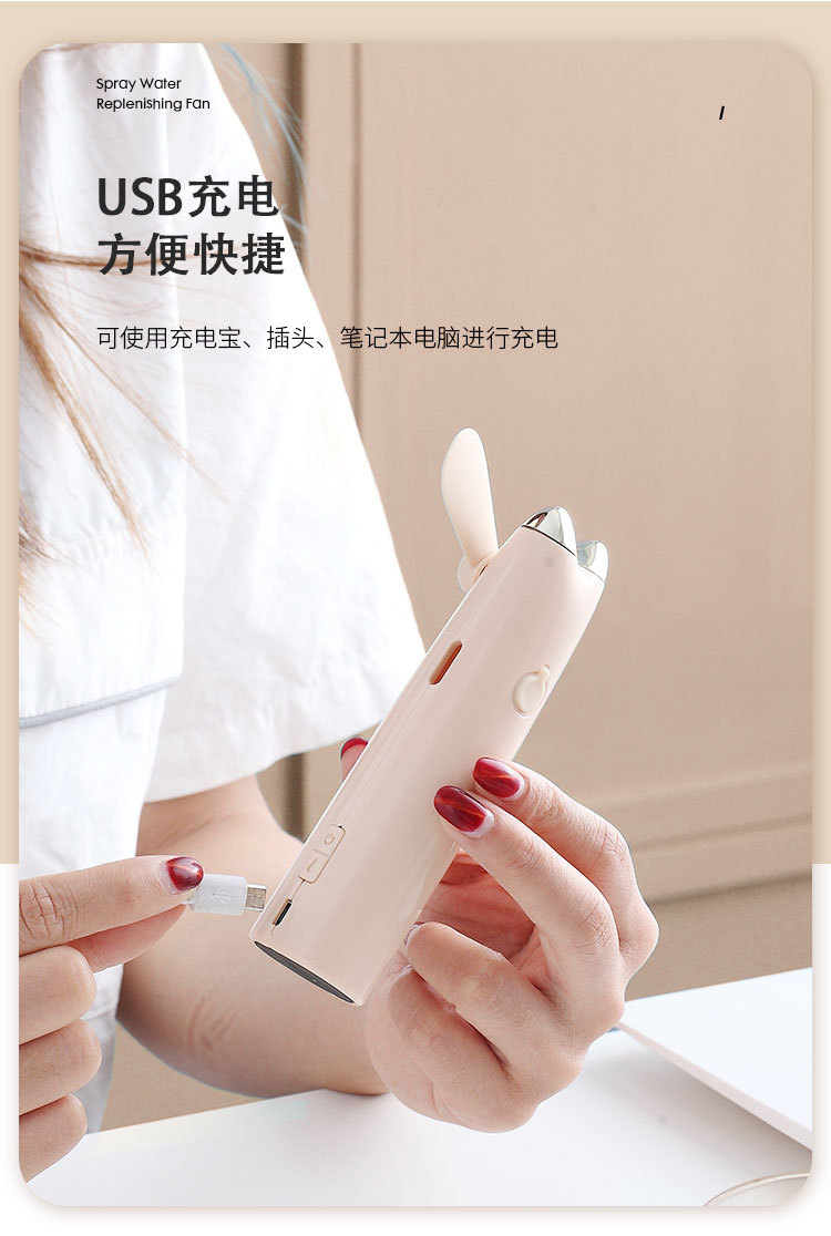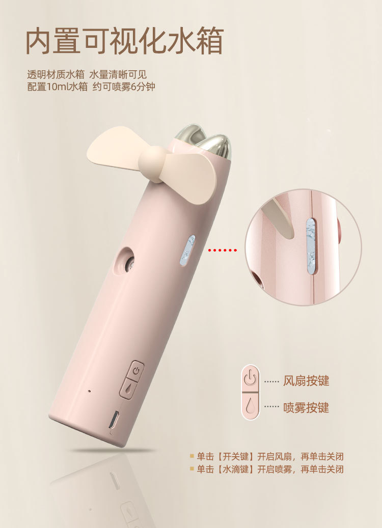 厂家批发创意自动喷雾补水仪风扇学生usb手持迷你加湿小风扇礼品