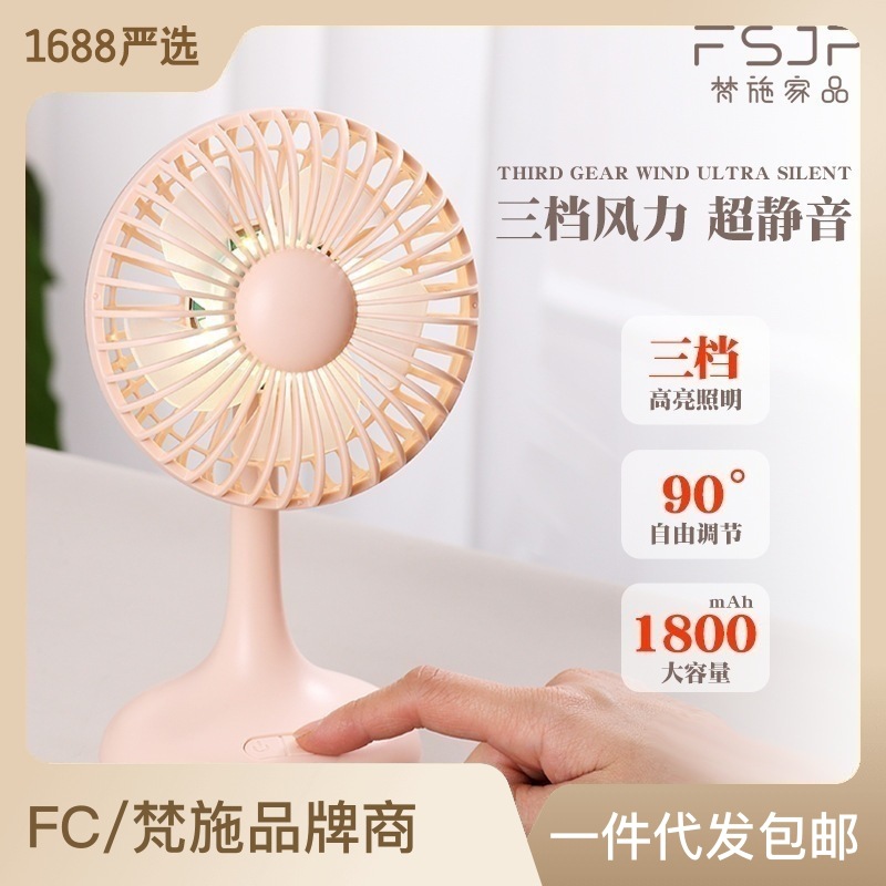厂家批发usb充电手持风扇 静音桌面小夜灯小礼品新款迷你小风扇