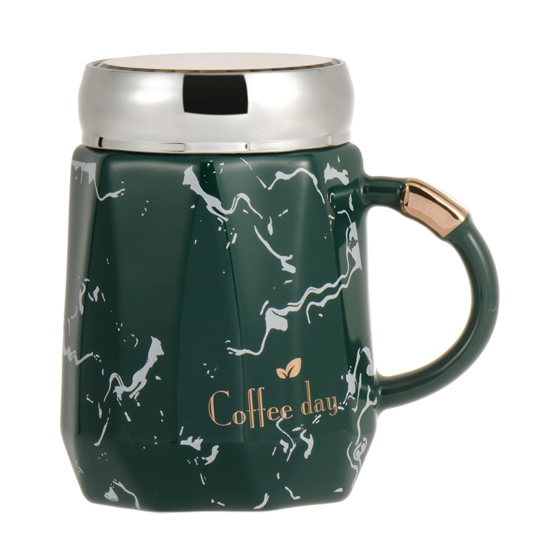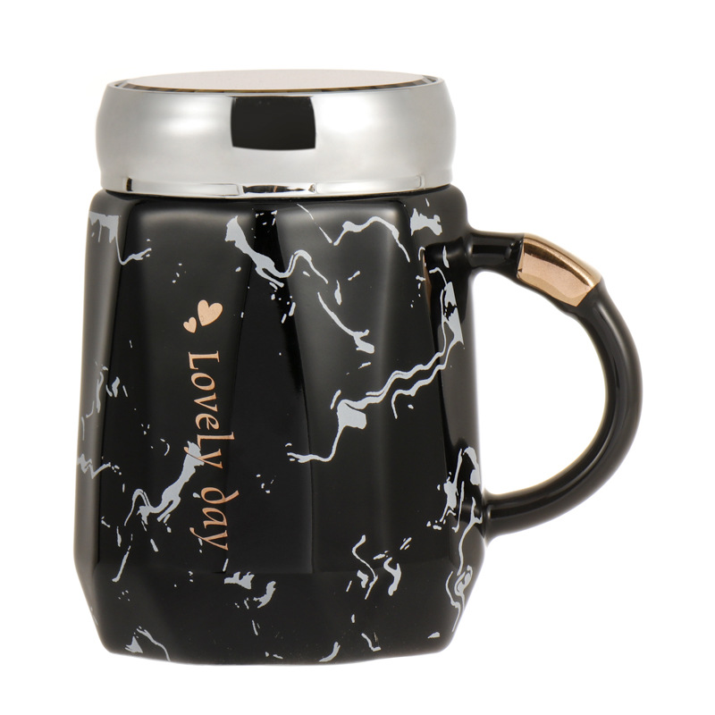 陶瓷杯简约风创意杯子家用马克杯水杯牛奶杯办公室咖啡杯带盖勺