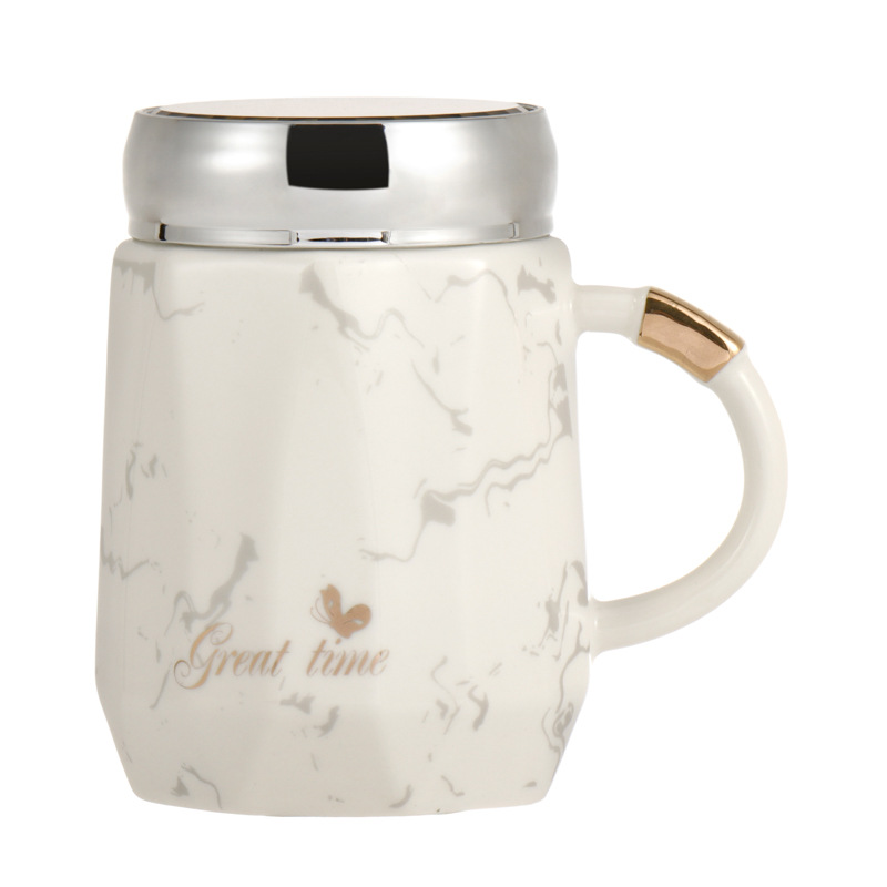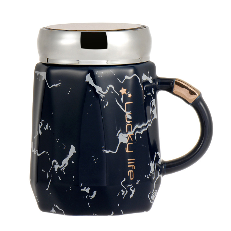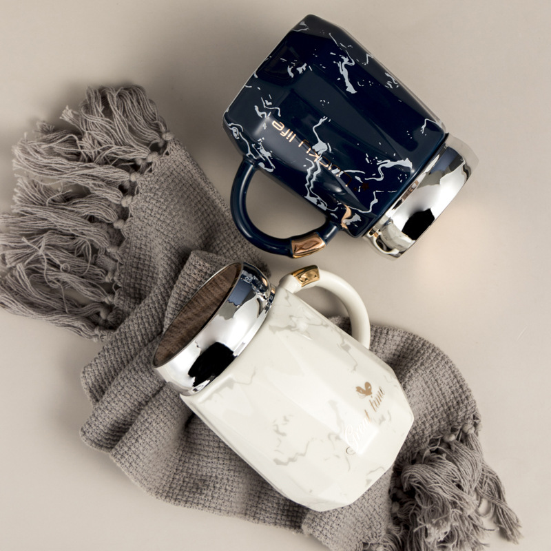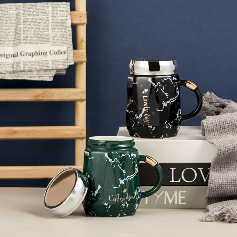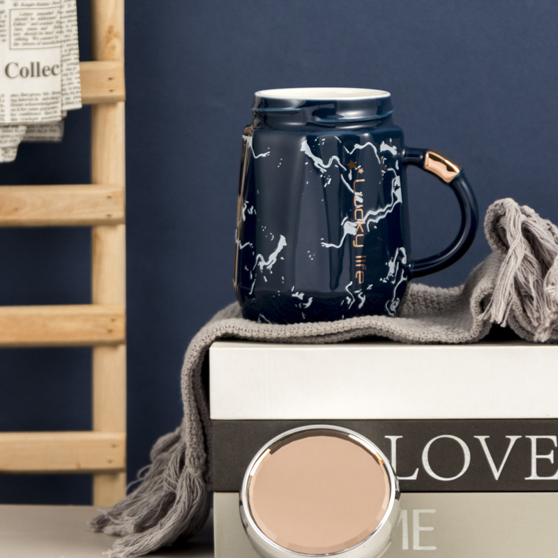 创意陶瓷水杯带盖马克小众喝水杯北欧风家用咖啡杯办公室茶杯陶瓷