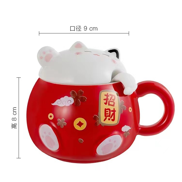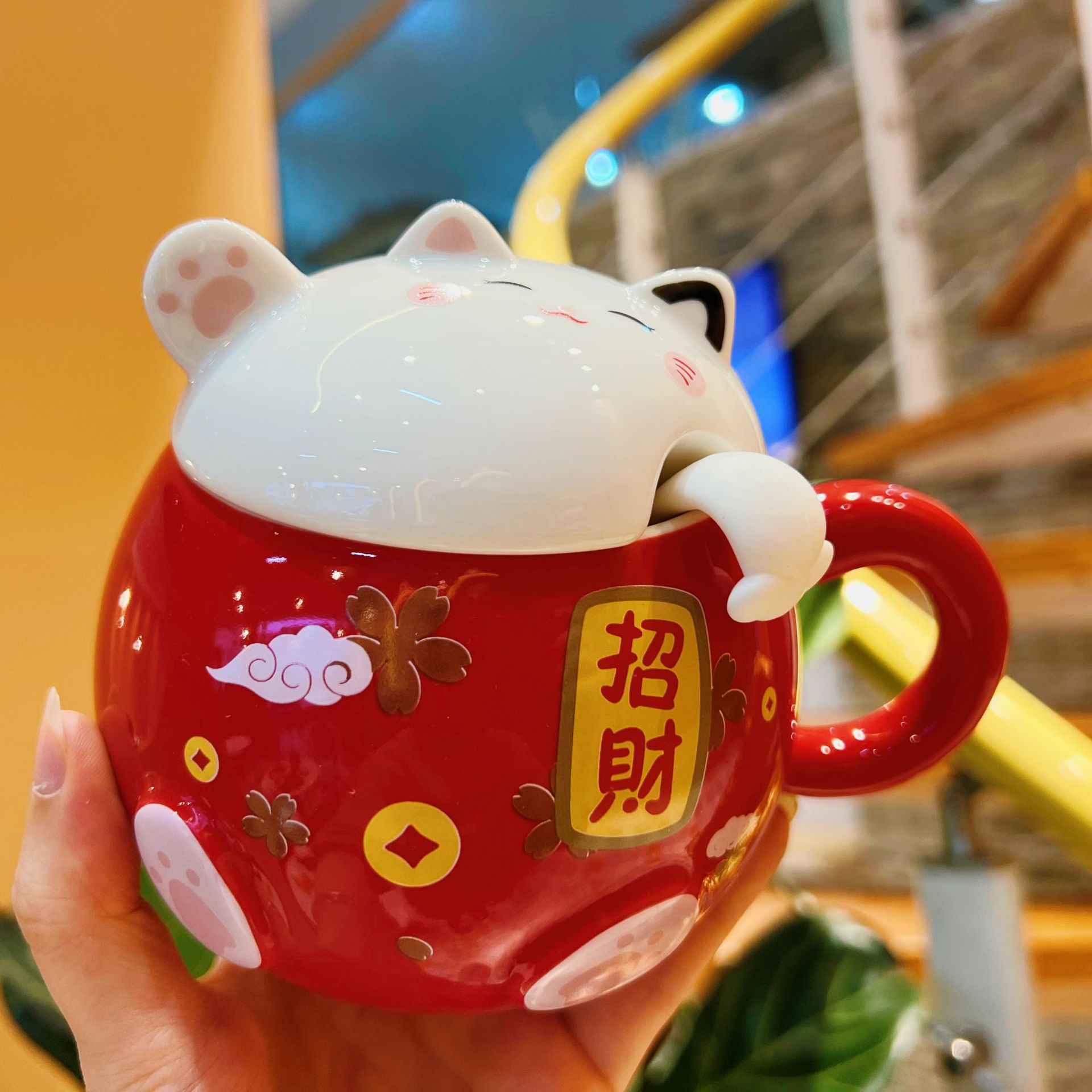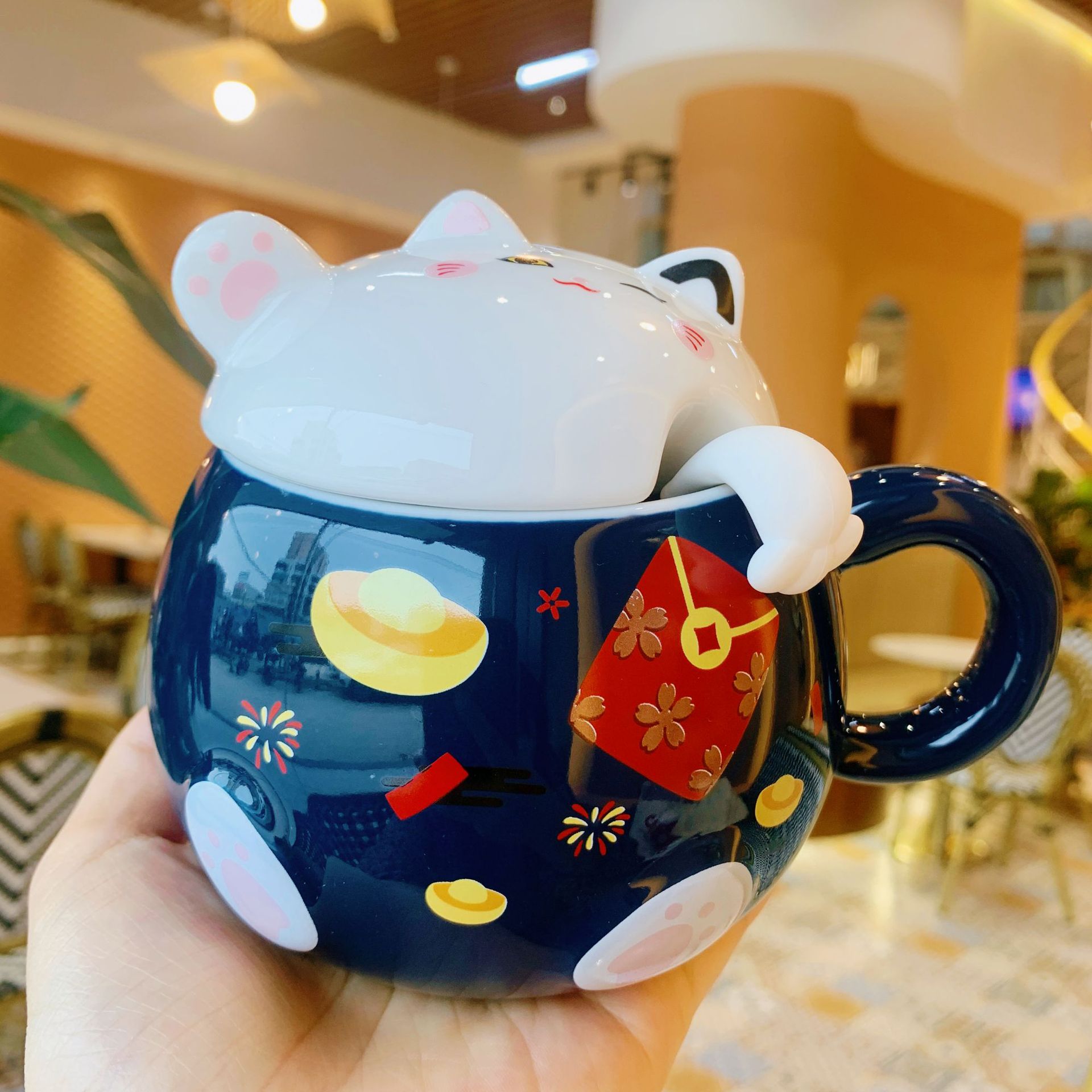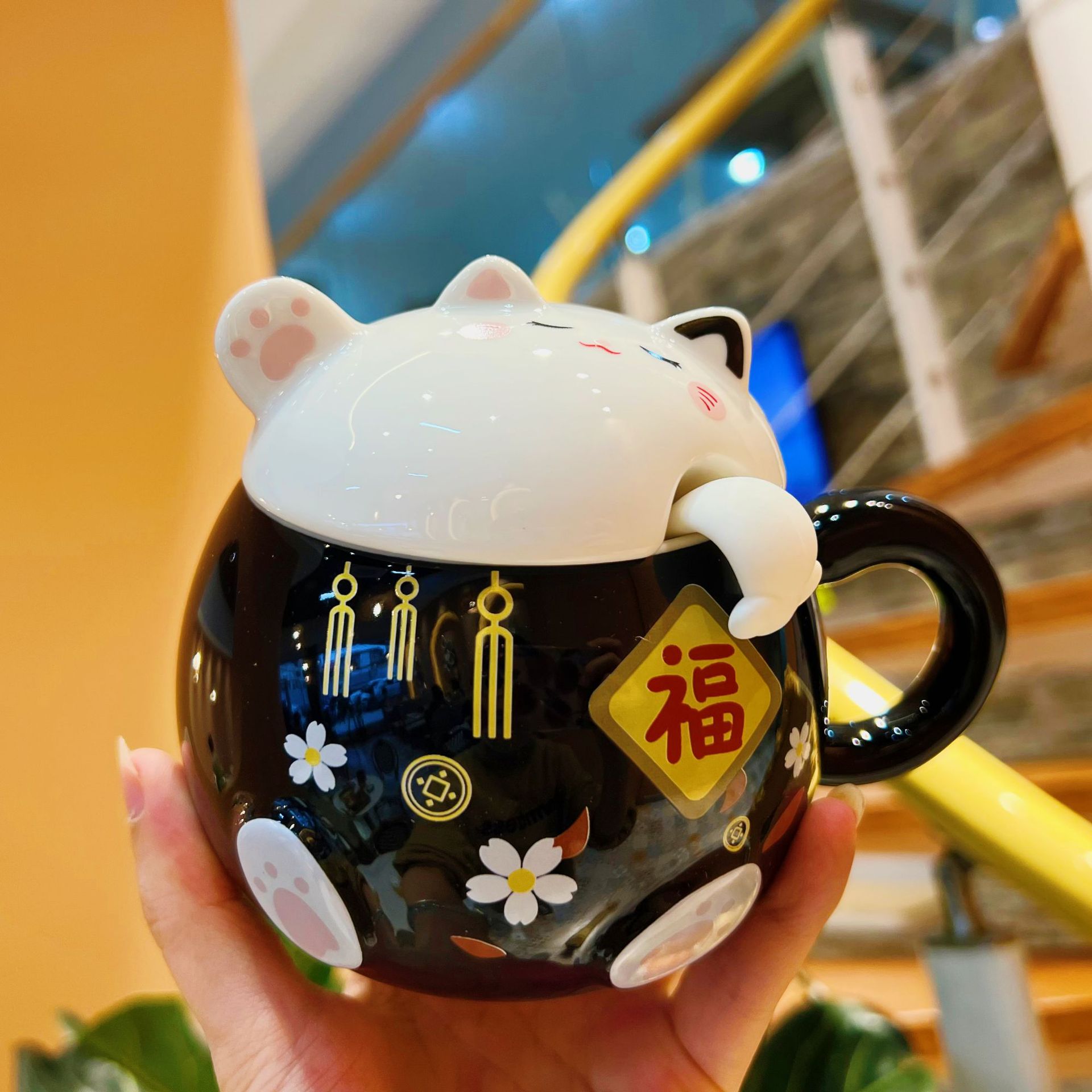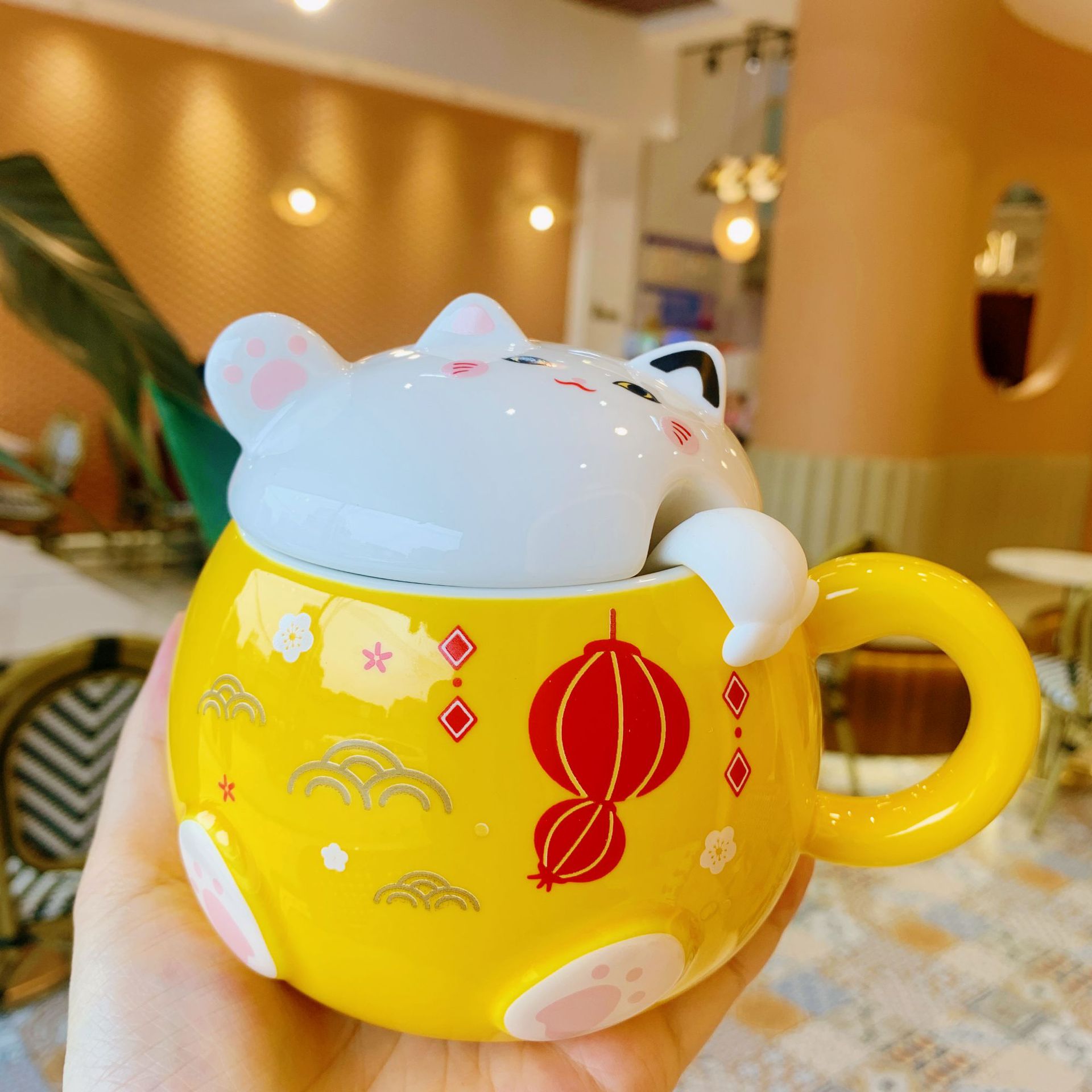 创意水杯可爱猫咪星球杯夏季大容量杯子卡通高颜值陶瓷杯带盖勺子