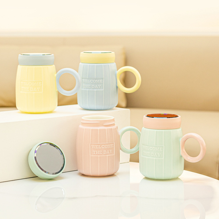 马卡龙色系陶瓷杯家用办公水杯咖啡杯创意高颜值情侣马克杯带盖