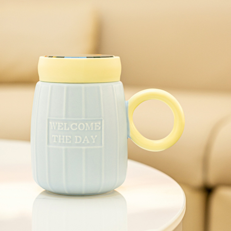 克茵蓝小熊陶瓷杯子批发家用水杯学生卡通马克杯带盖办公室咖啡杯