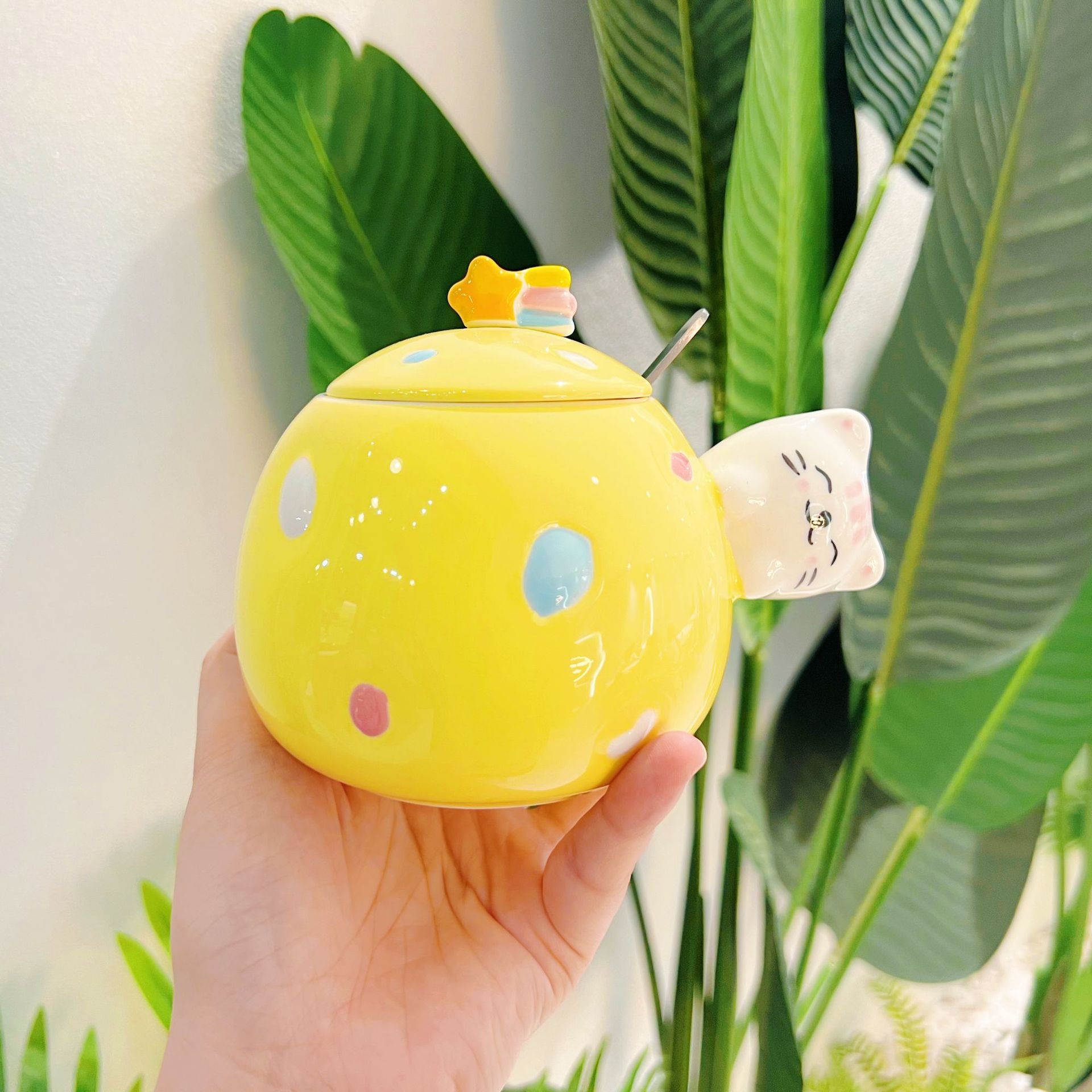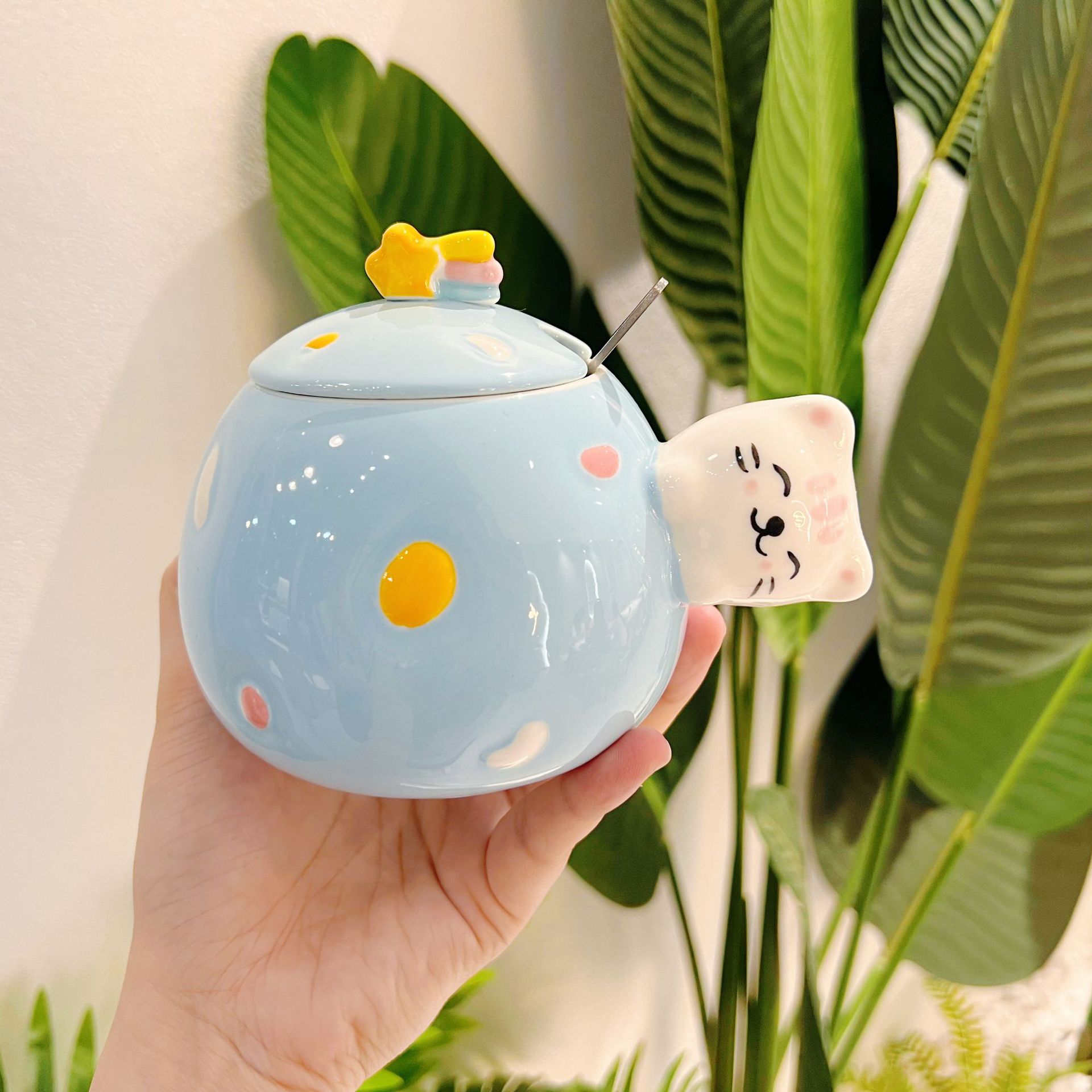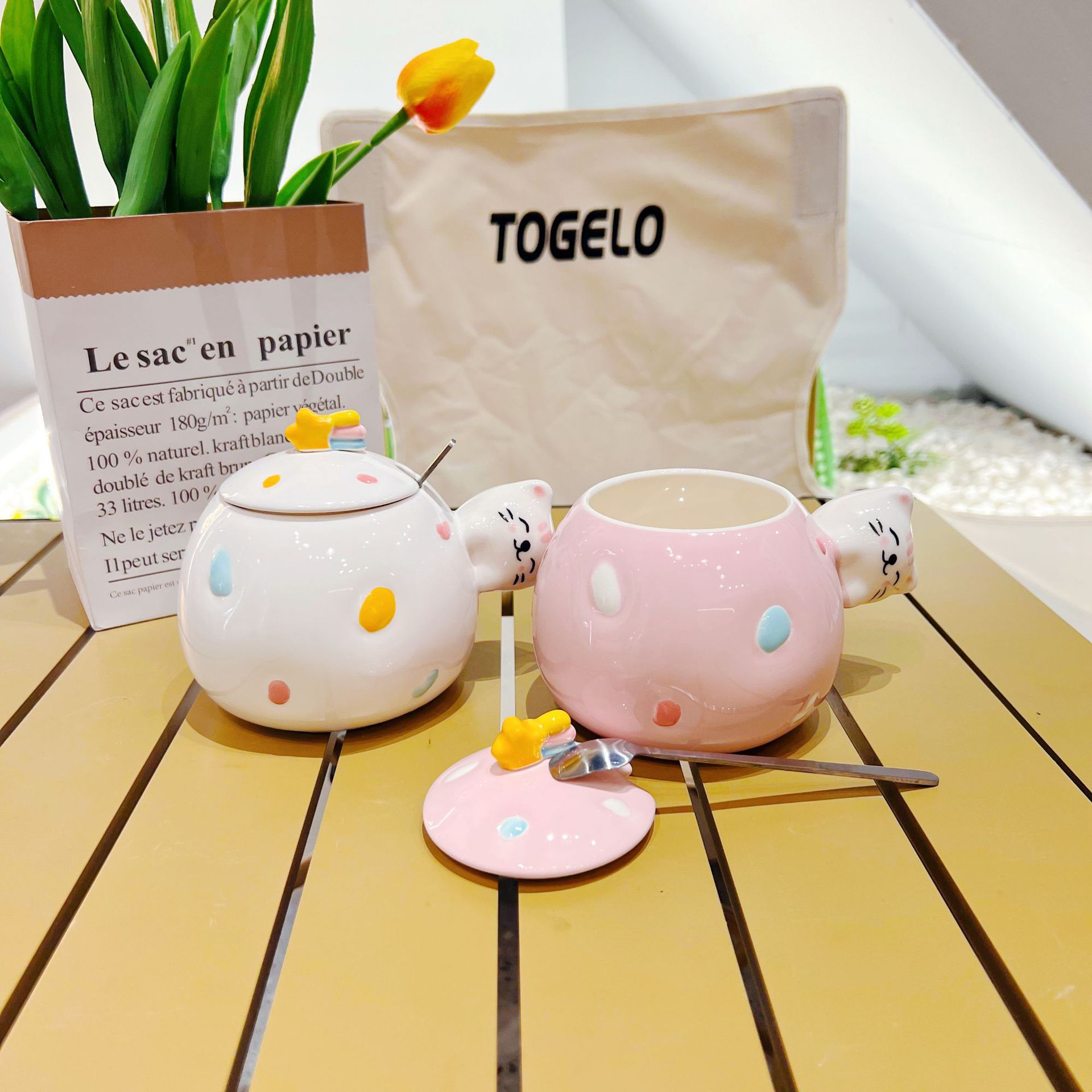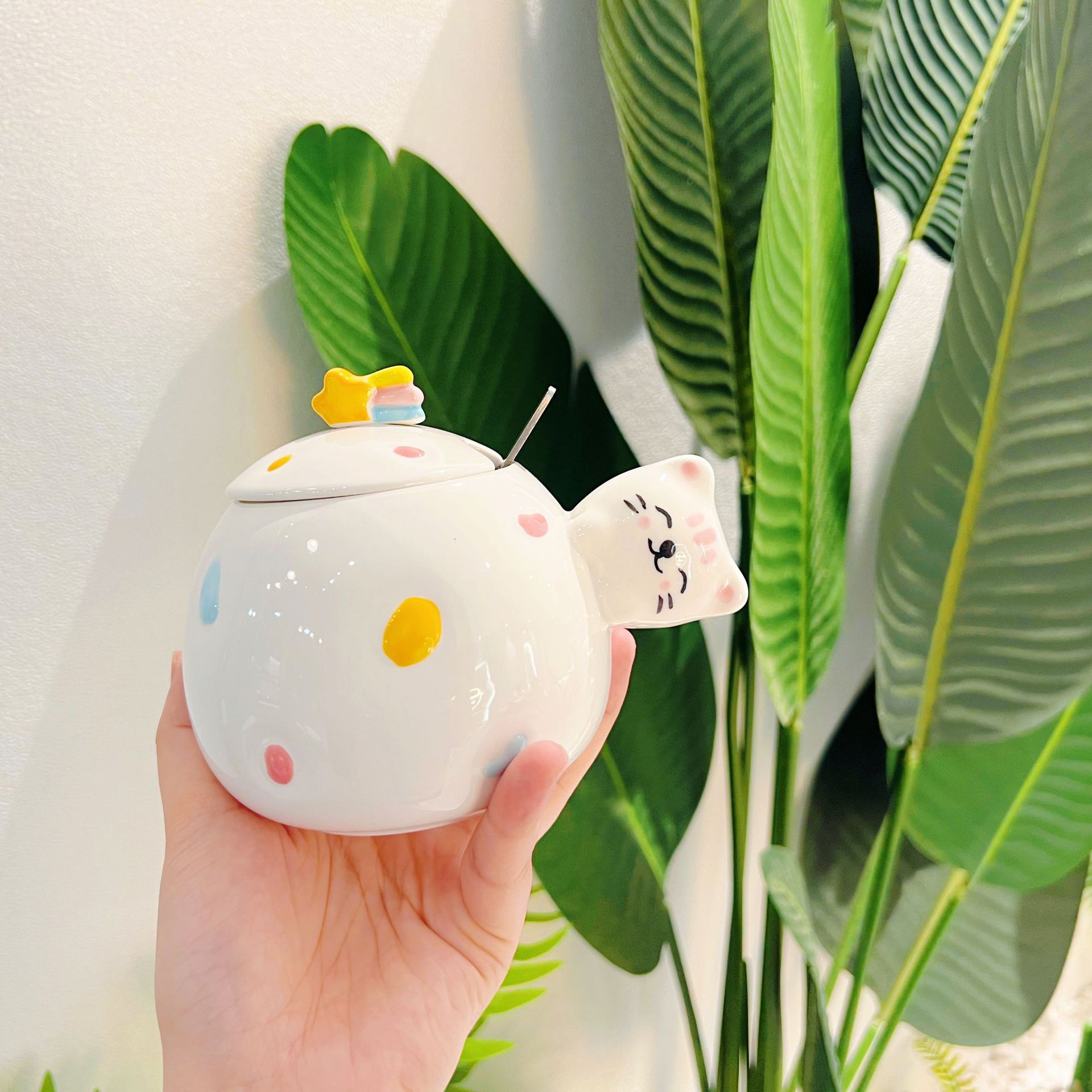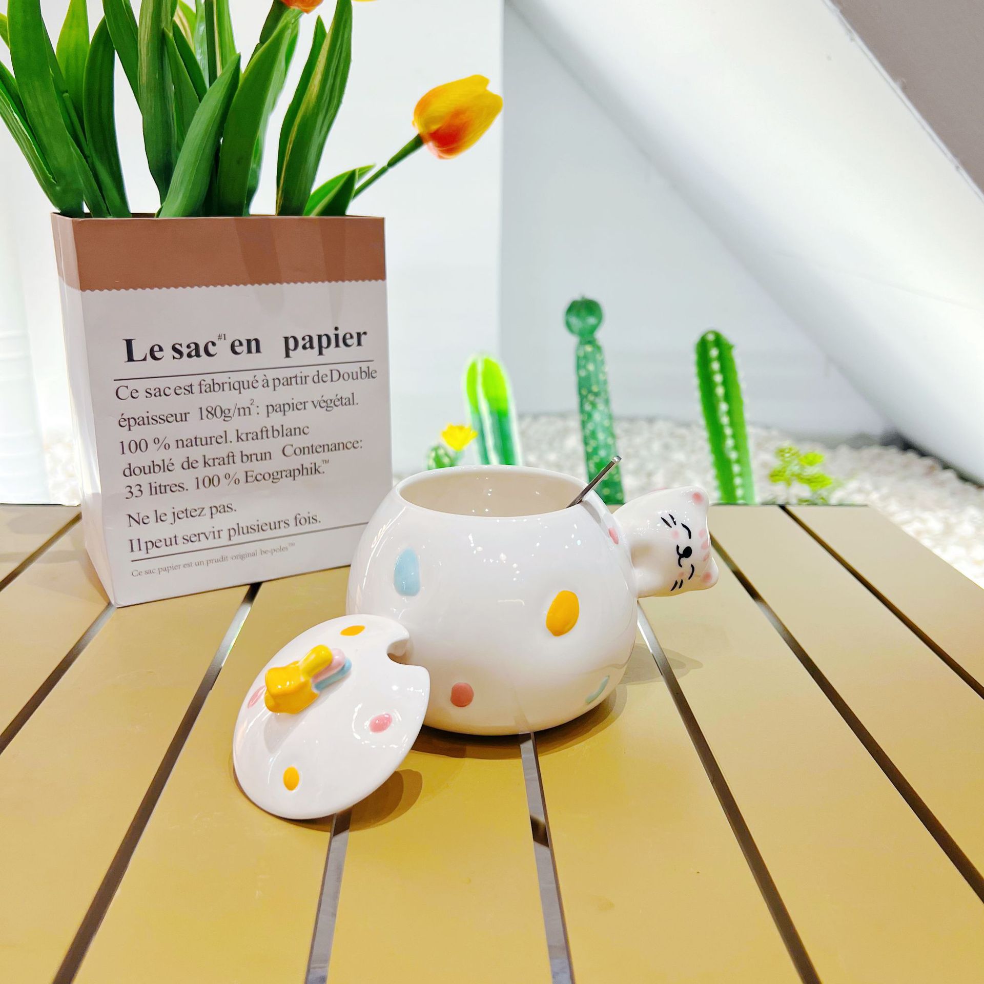 中国风可爱招财猫陶瓷杯牛奶咖啡杯办公室招财摆件带盖家用水杯