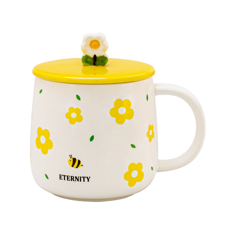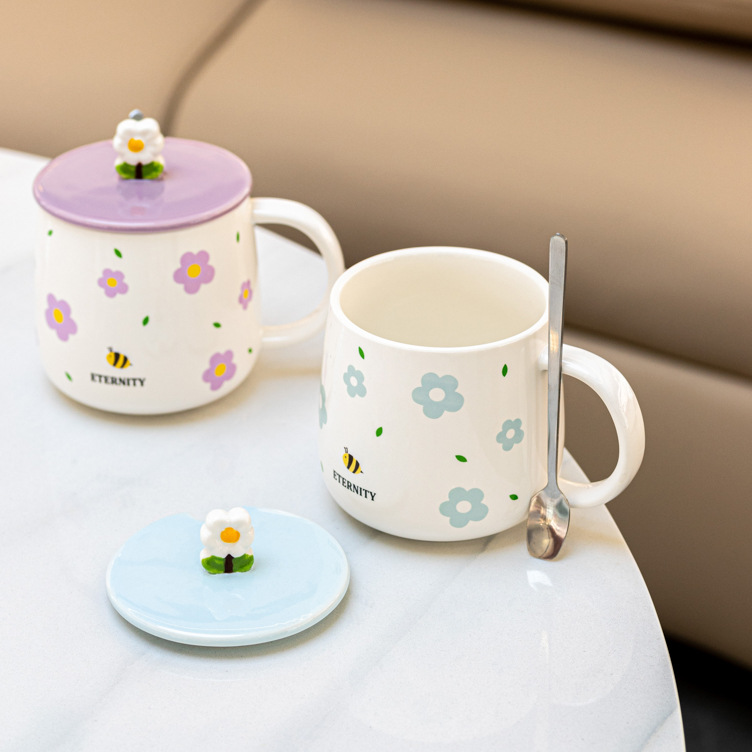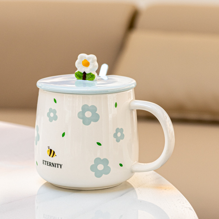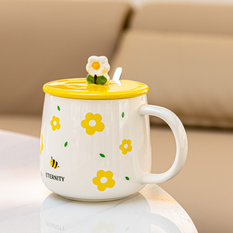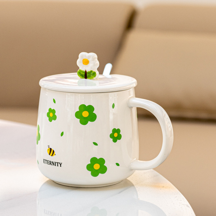 创意陶瓷水杯带盖马克小众喝水杯北欧风家用咖啡杯办公室茶杯陶瓷